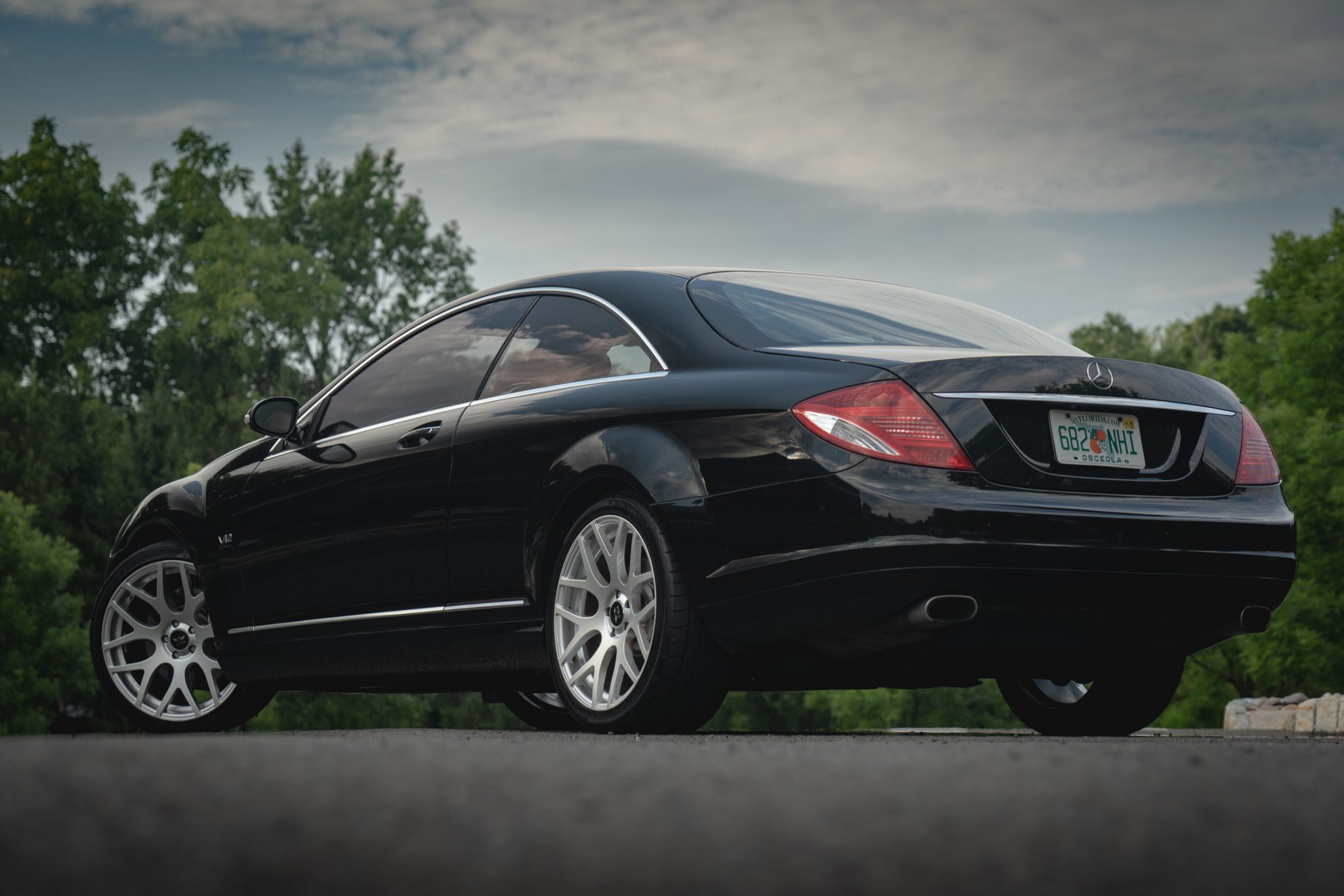 20″ Savini Avarus wheels are mounted with Sumitomo HTR Z III tires measuring 255/35 up front and 275/35 out back, and the selling dealer notes that the tire pressure sensors are not installed and curb marks are visible on the wheels. The car is equipped with Active Body Control suspension, and a remanufactured hydraulic pump and hydropneumatic spring were installed in 2018.