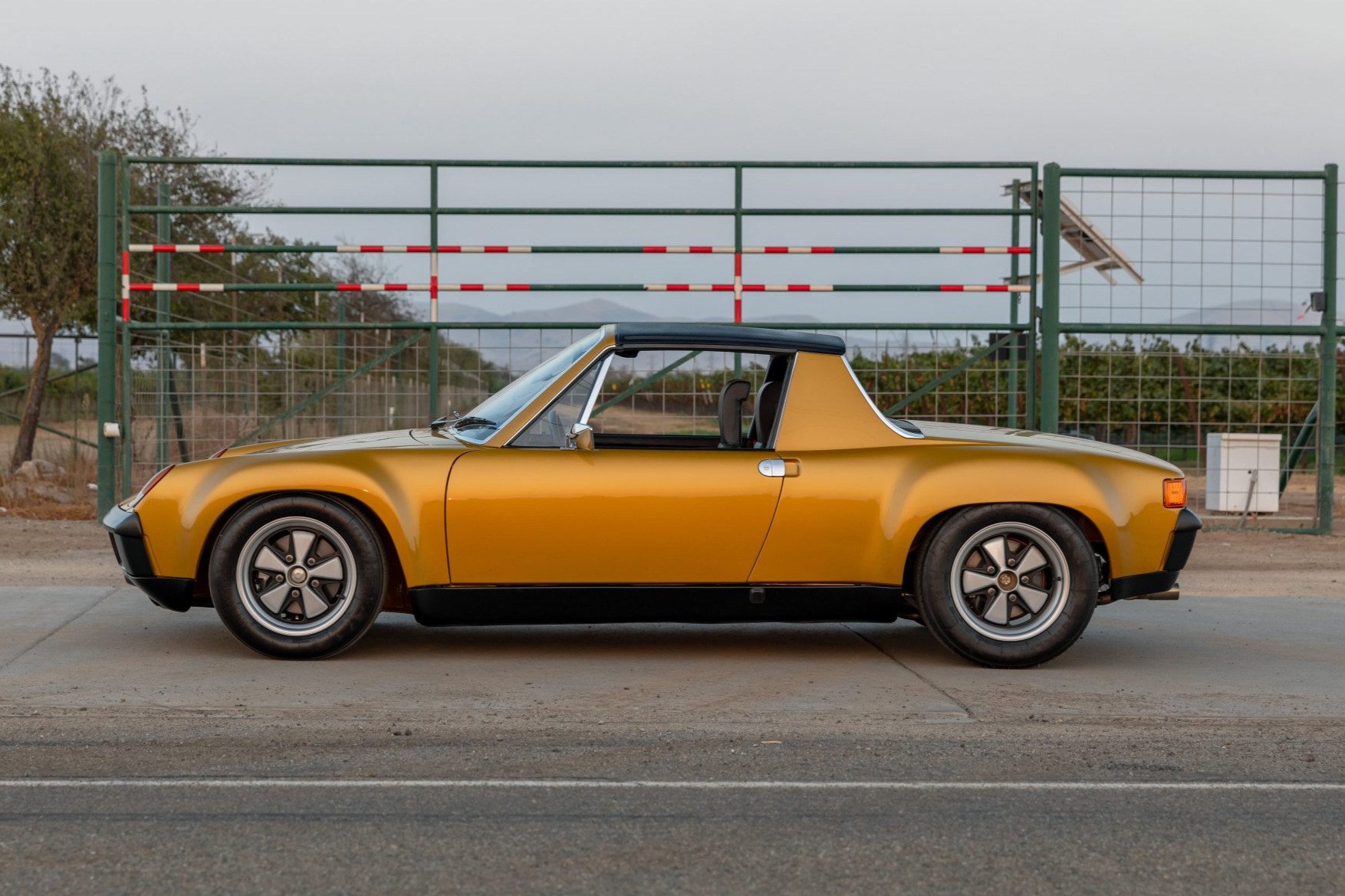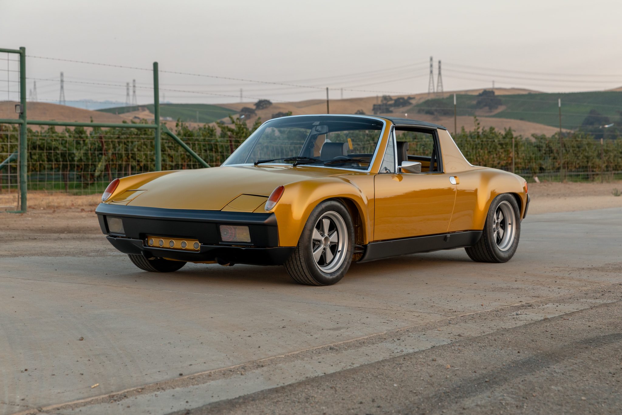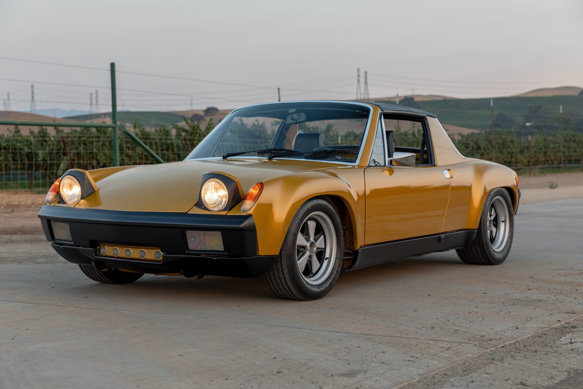 The 15” Fuchs-style alloy wheels measure 7” in width up front and 9” out back, and are wrapped in Michelin TB15 tires. The car rides on adjustable Bilstein coilover suspension, and stopping power is provided by four-wheel Carrera disc brakes with vented rotors.