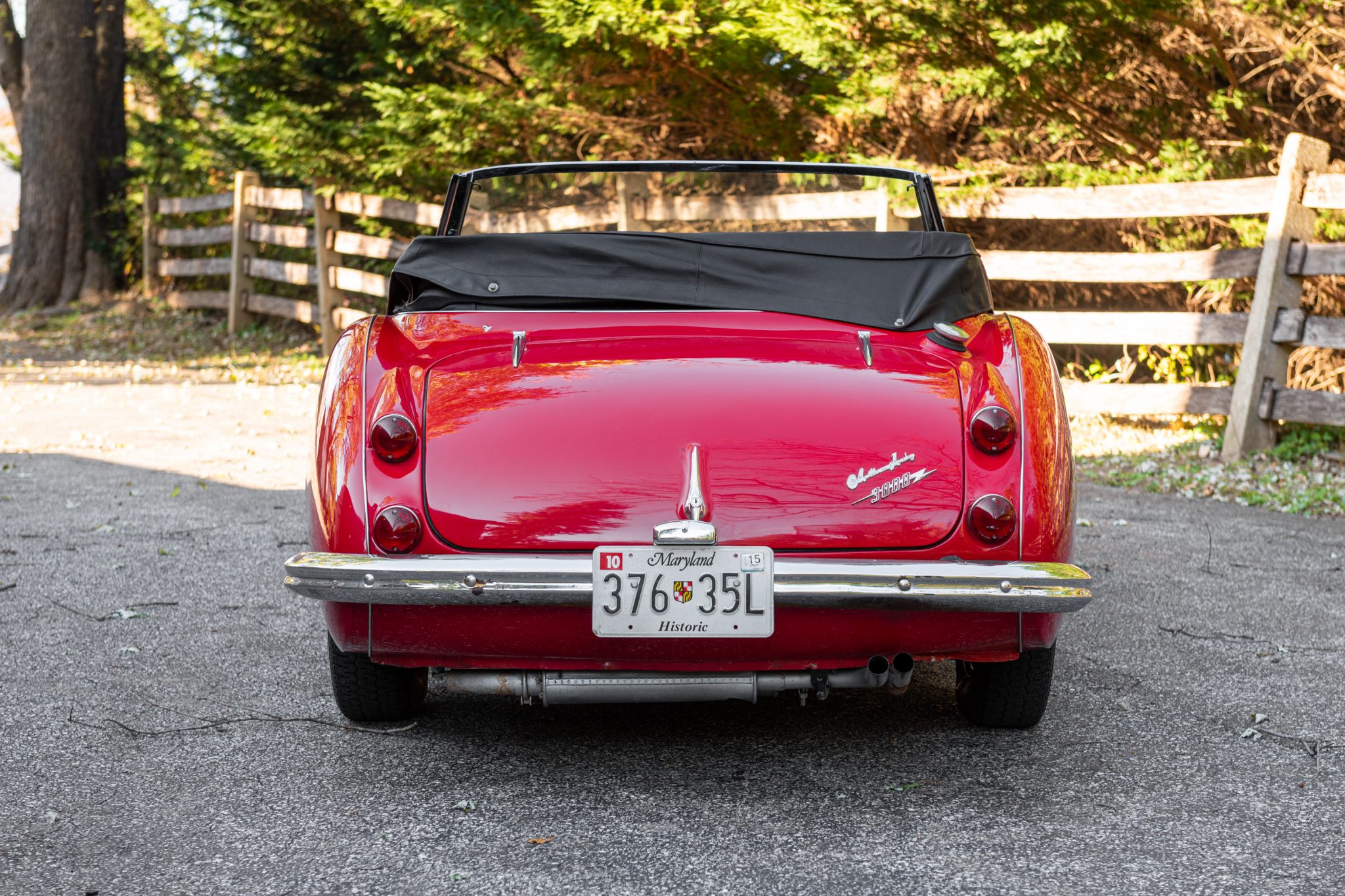 Chrome 15″ wire wheels wear two-eared knock-off spinners and are wrapped in 165-series Michelin XZX tires. Braking is handled by front discs and rear drums.
