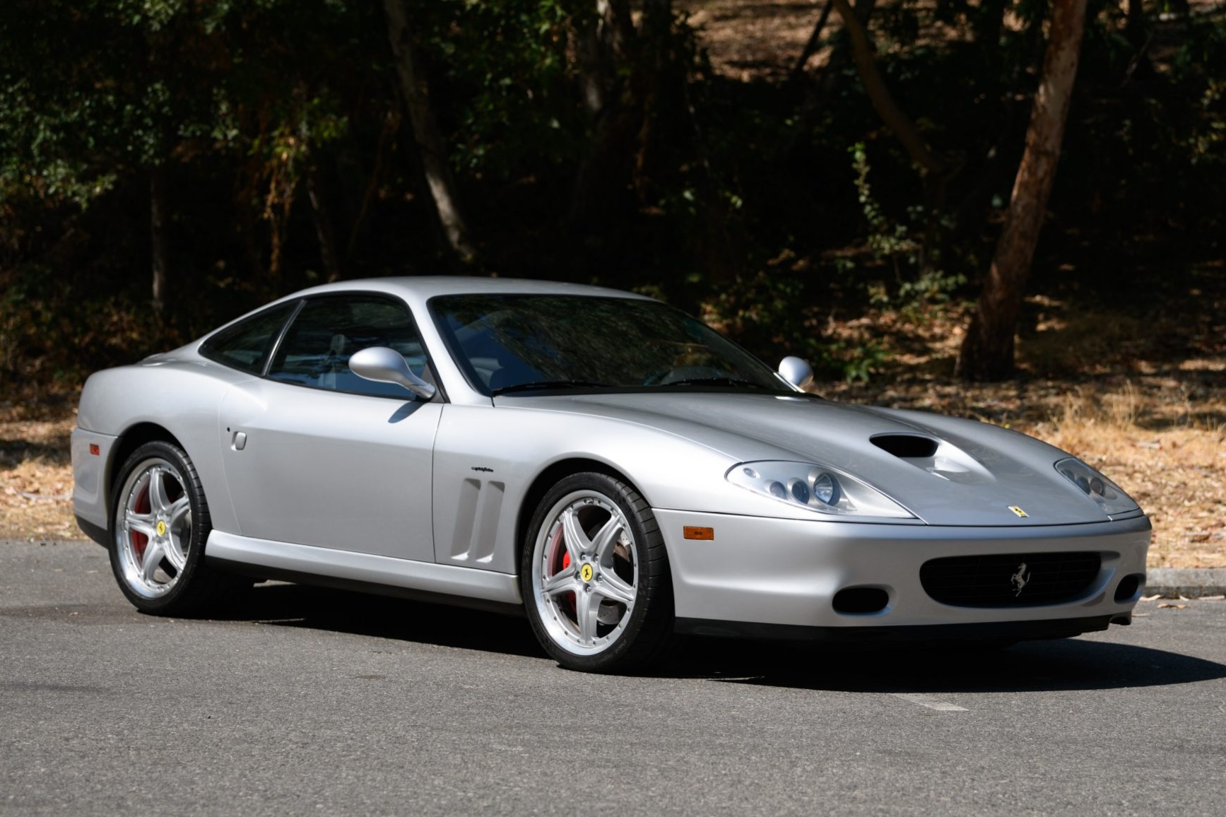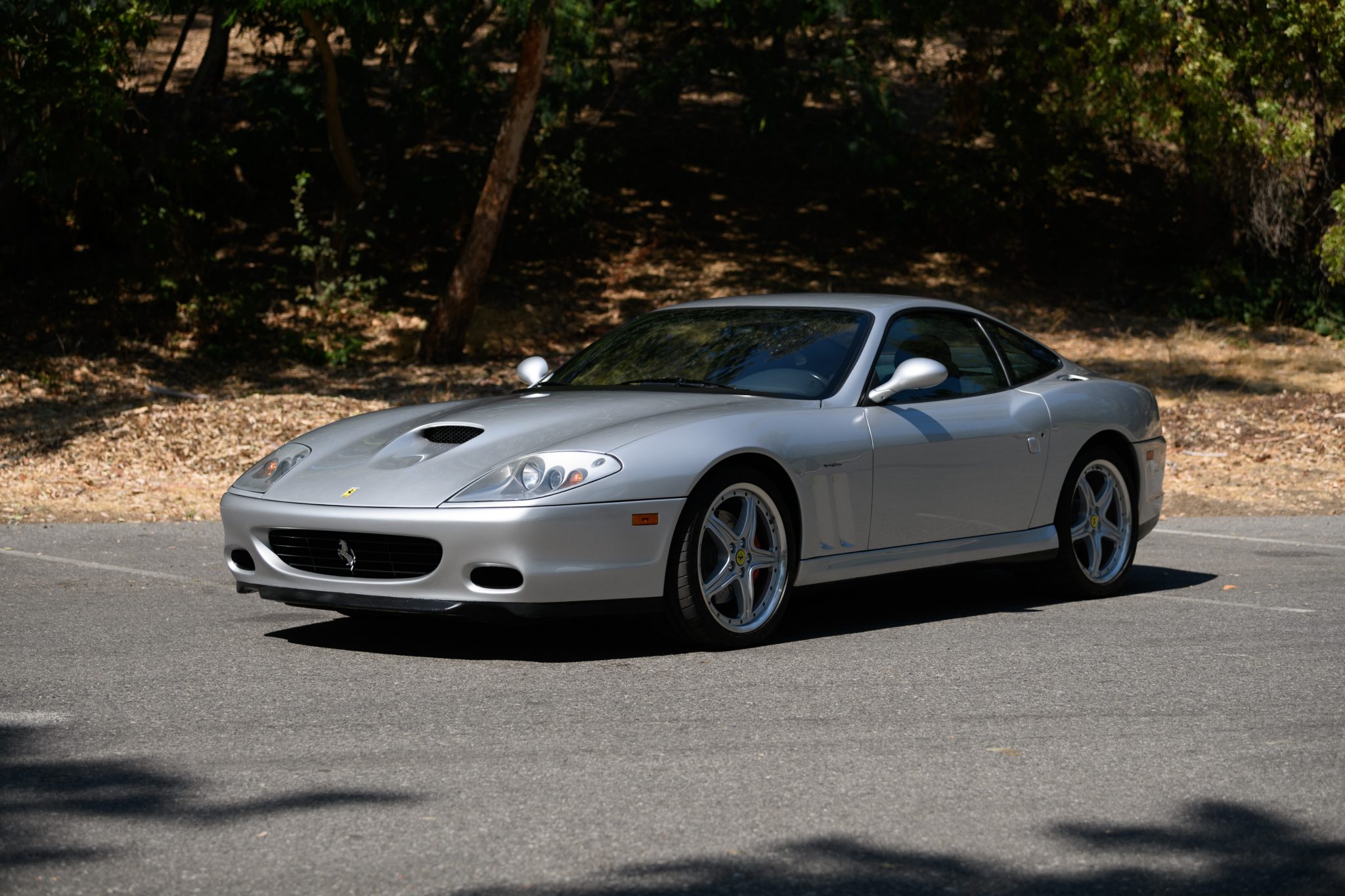 Staggered-width 19” two-piece factory wheels feature prancing horse center caps and are wrapped in Michelin Pilot Super Sport tires measuring 255/35 up front and 305/30 out back, which were mounted in 2017. Stopping power is provided by red-painted calipers that clamp cross-drilled rotors at all four corners. The car is equipped with the factory-optional Fiorano Handling Package, which included stiffer front and rear springs, an uprated rear anti-sway bar, and a re-tuned power steering setup.