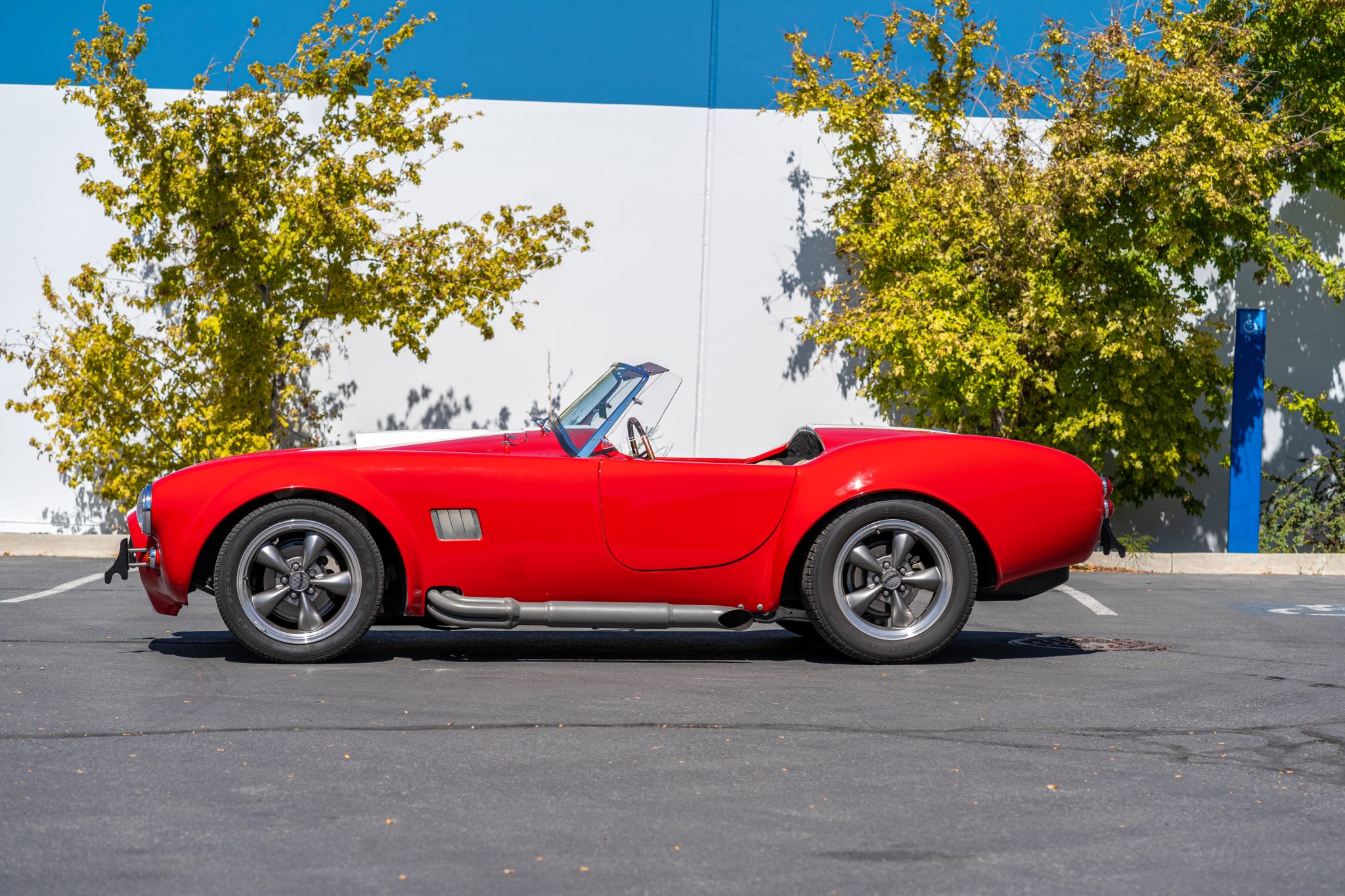 Gray-finished Bullitt-style 17″ wheels wear Goodyear Eagle ZR45 tires up front and BFGoodrich g-force T/A tires out back. Stopping power is provided by discs at all four corners, and power steering is fitted.
