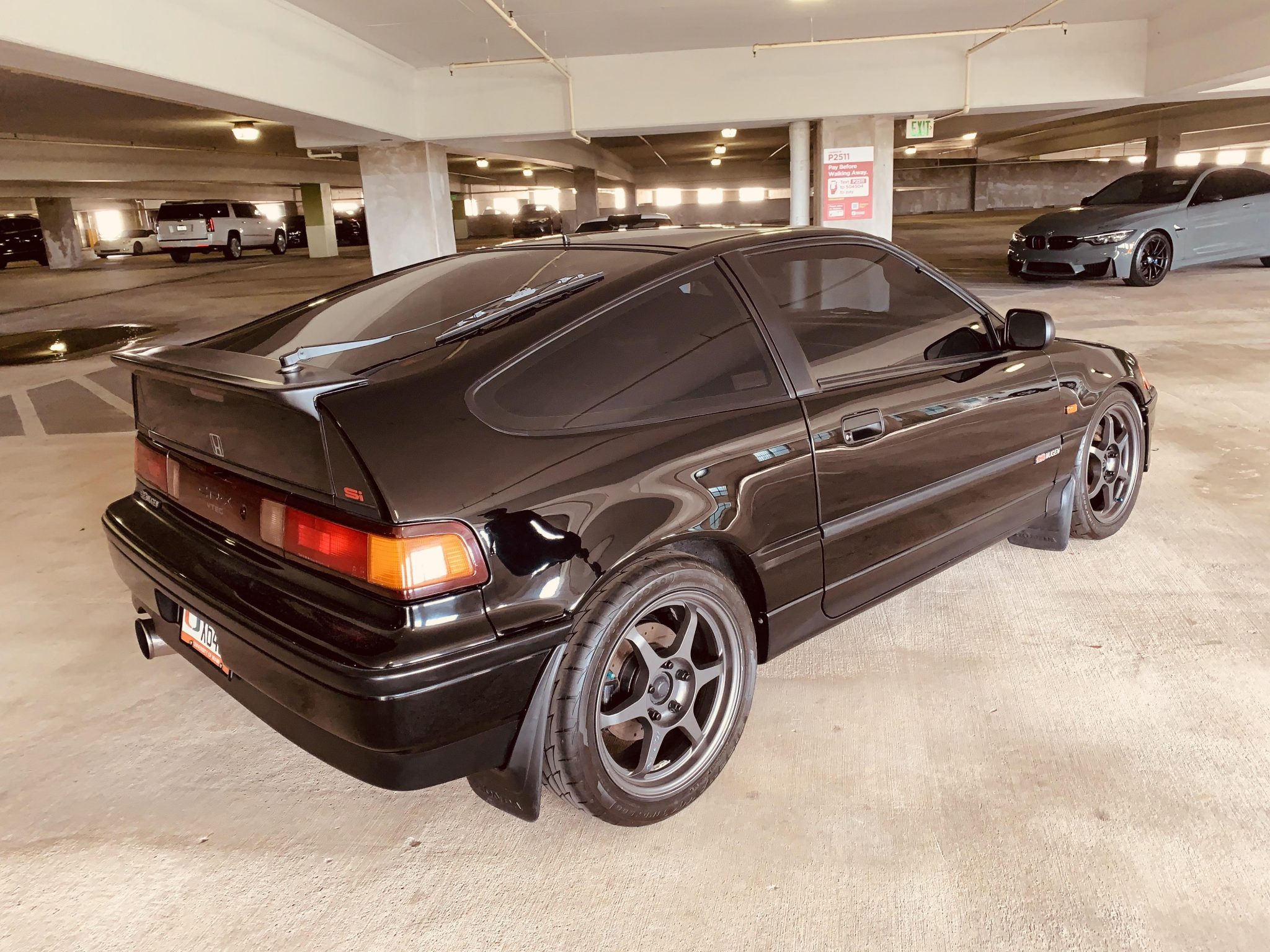 Five-lug 16″ Buddy Club wheels wear 205/45 Firestone Firehawk Indy500 tires. The four-wheel disc brakes feature cross-drilled rotors and stainless steel braided hoses. The suspension has been modified with Eibach springs, Koni shocks, and an aftermarket rear sway bar.