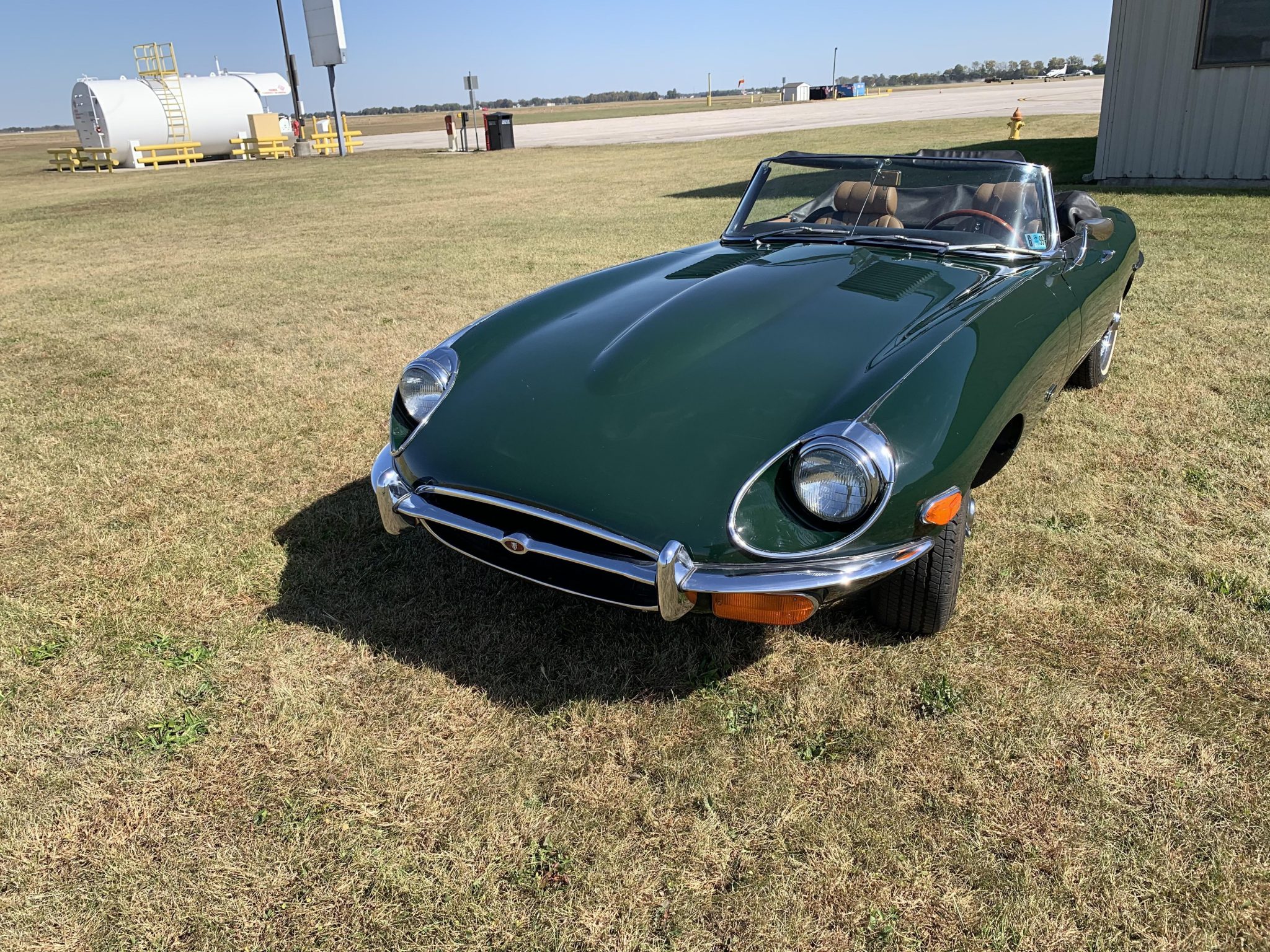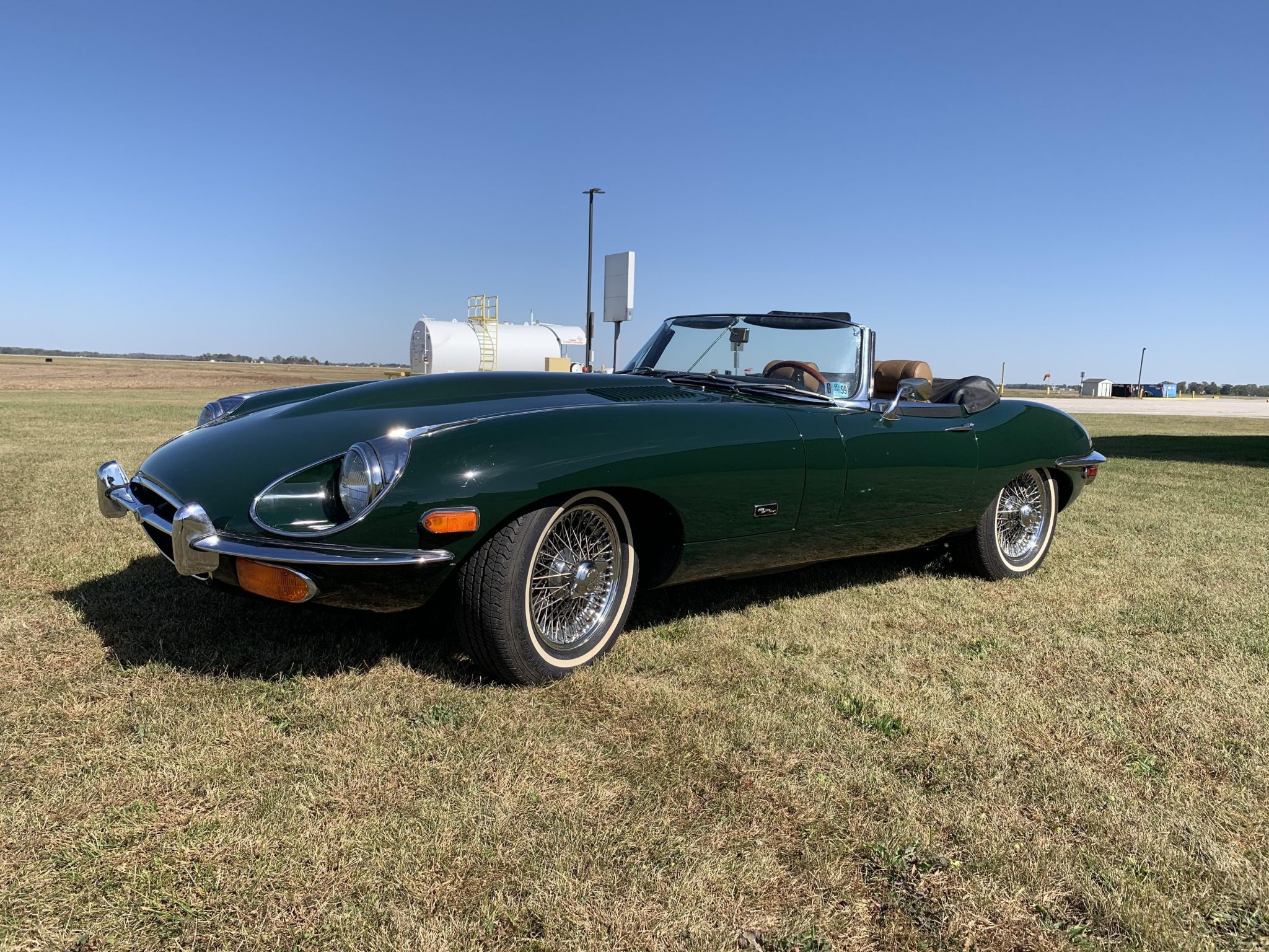 Chrome-finished 15″ wire wheels wear 205/70 Dunlop SP40 whitewall tires as well as two-ear Jaguar knockoffs. The brake master cylinder was replaced in 2019, and the chassis was lubricated in 2020.