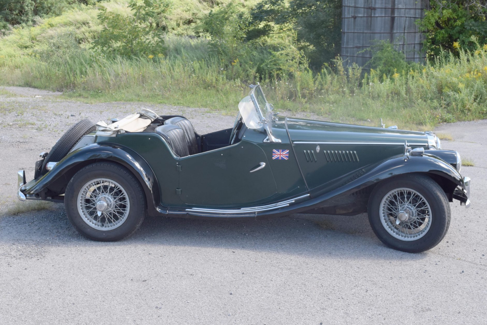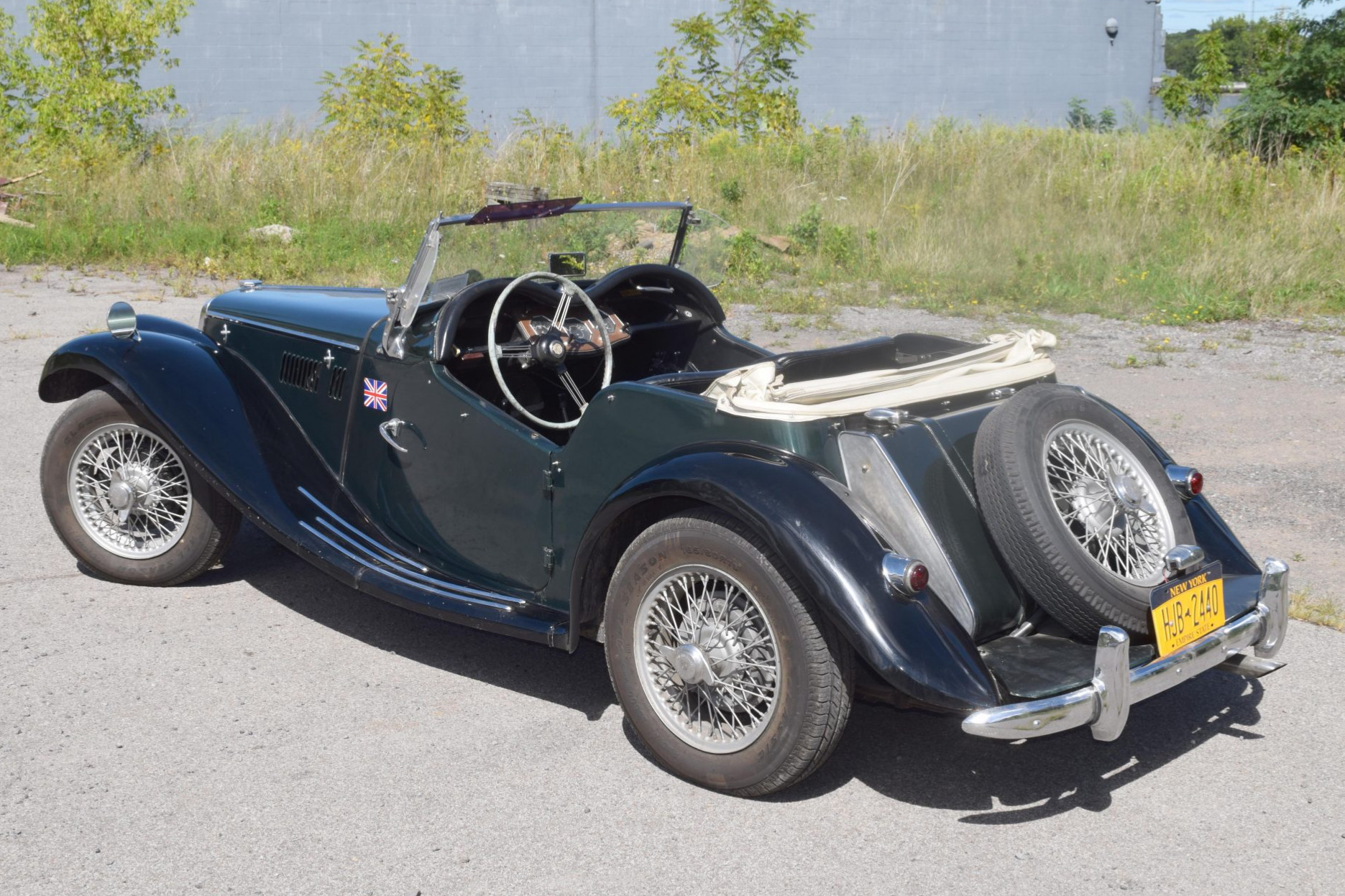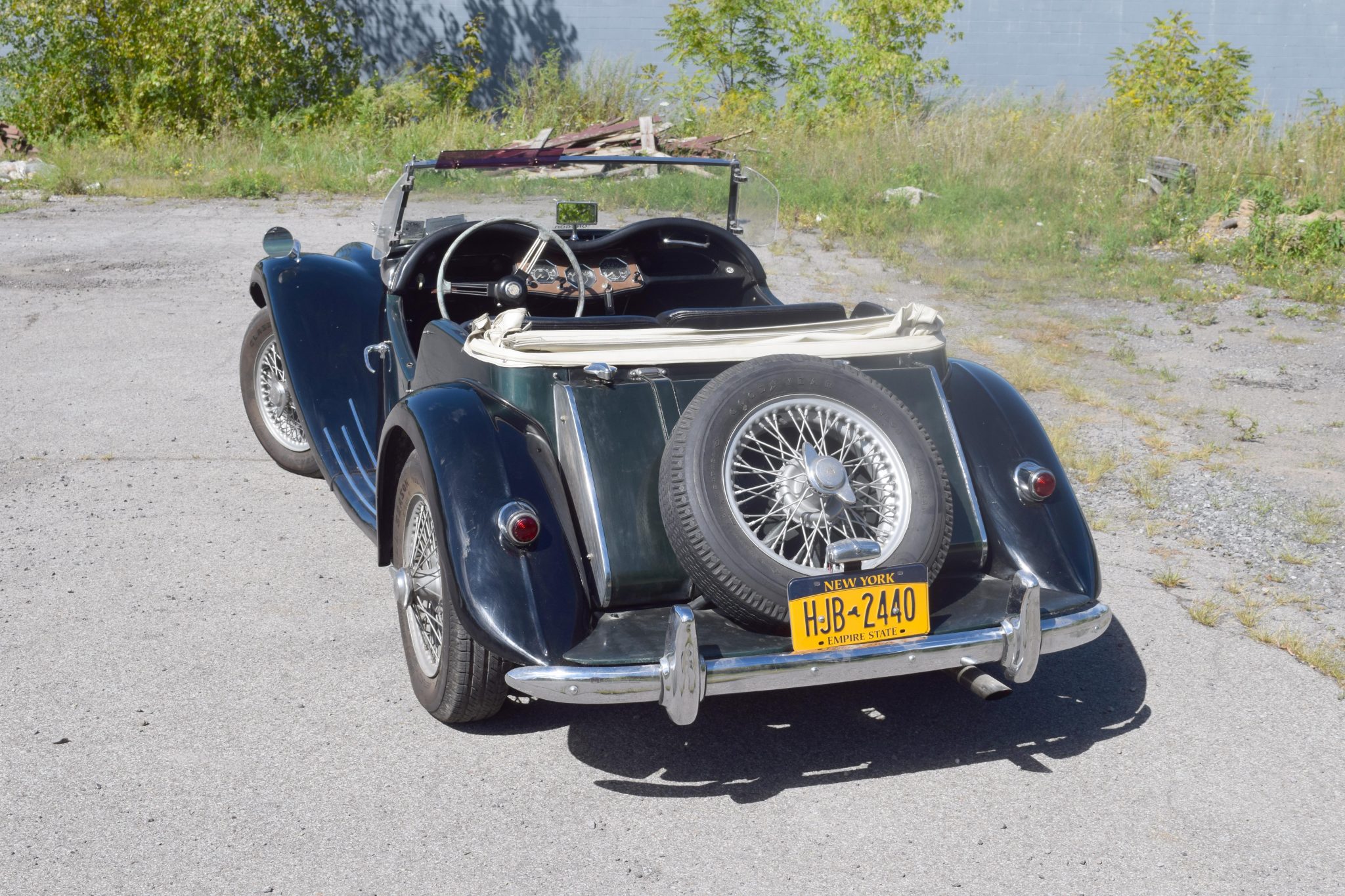 The 16″ knock-off wire wheels are mounted with Classic All Season tires, and a spare is mounted out back. Braking is provided by drums at all four corners, and the seller notes that the front control arm bushings were replaced during previous ownership.
