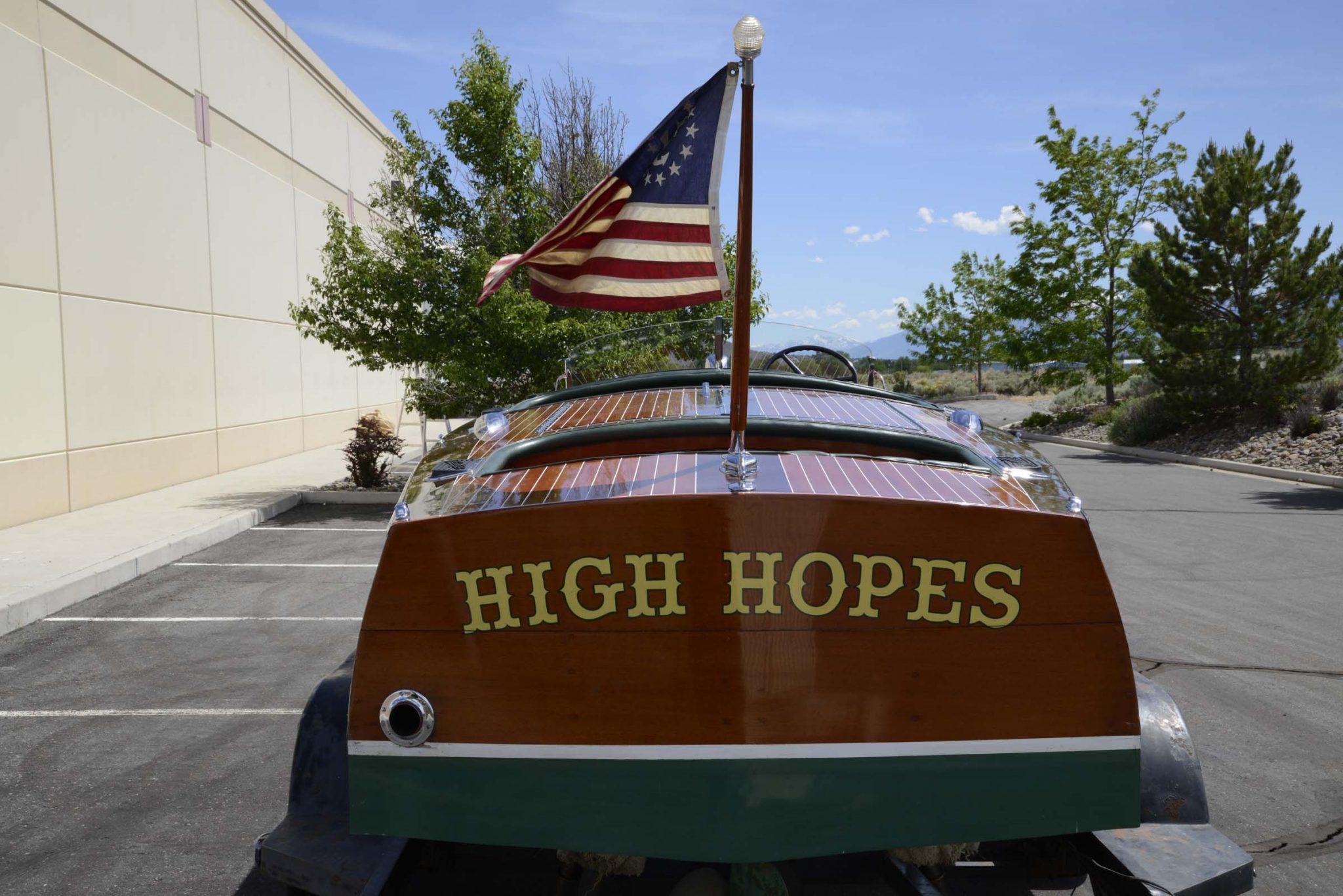 The vessel’s registration number and marque are painted on the sides, while its name, High Hopes, can be found on the transom. Imperfections in the finish are pictured up close in the gallery below, and the seller notes that the trailer is not included in the sale.