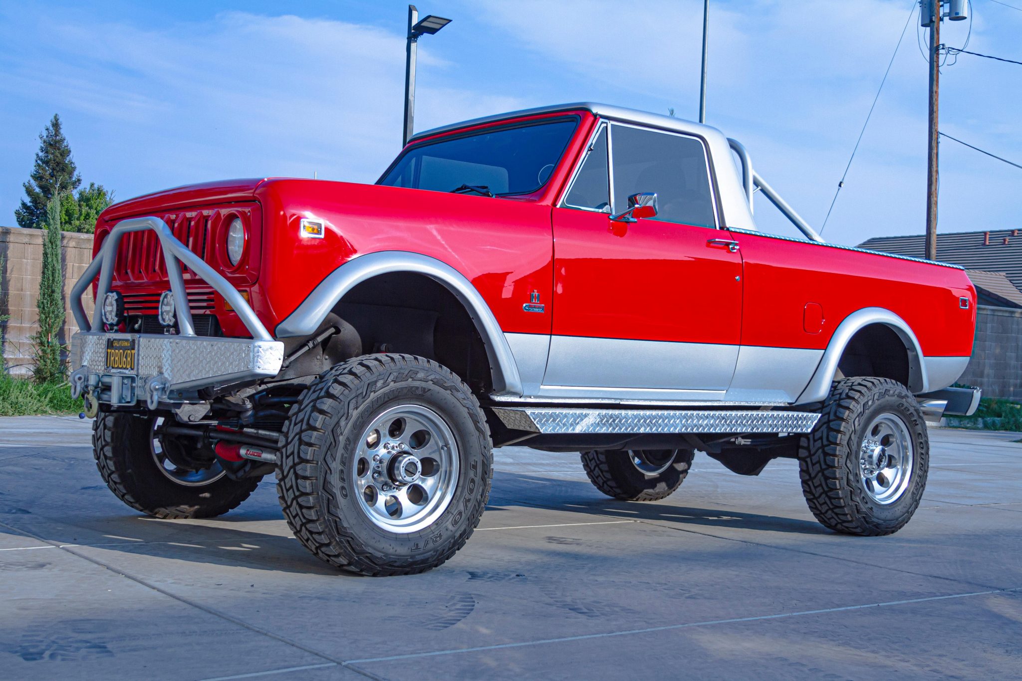 Polished 15″ Mickey Thompson wheels wear Toyo Open Country R/T tires and are mounted over manually-locking hubs up front. Braking is provided by power-assisted discs and drums, all of which were replaced in August 2020. A RedHead steering gearbox was also installed. The truck is equipped with Rancho shocks and steering stabilizers.