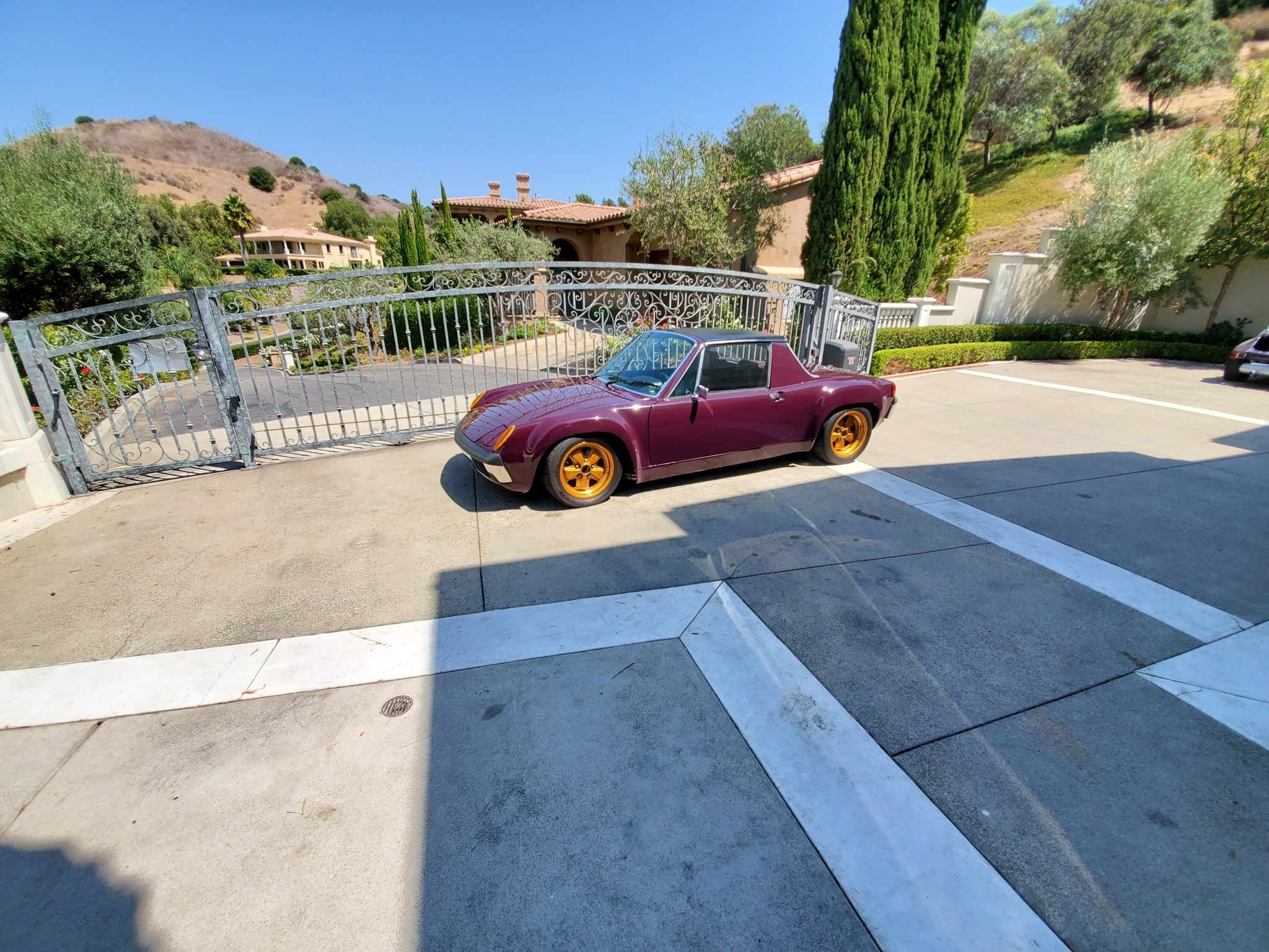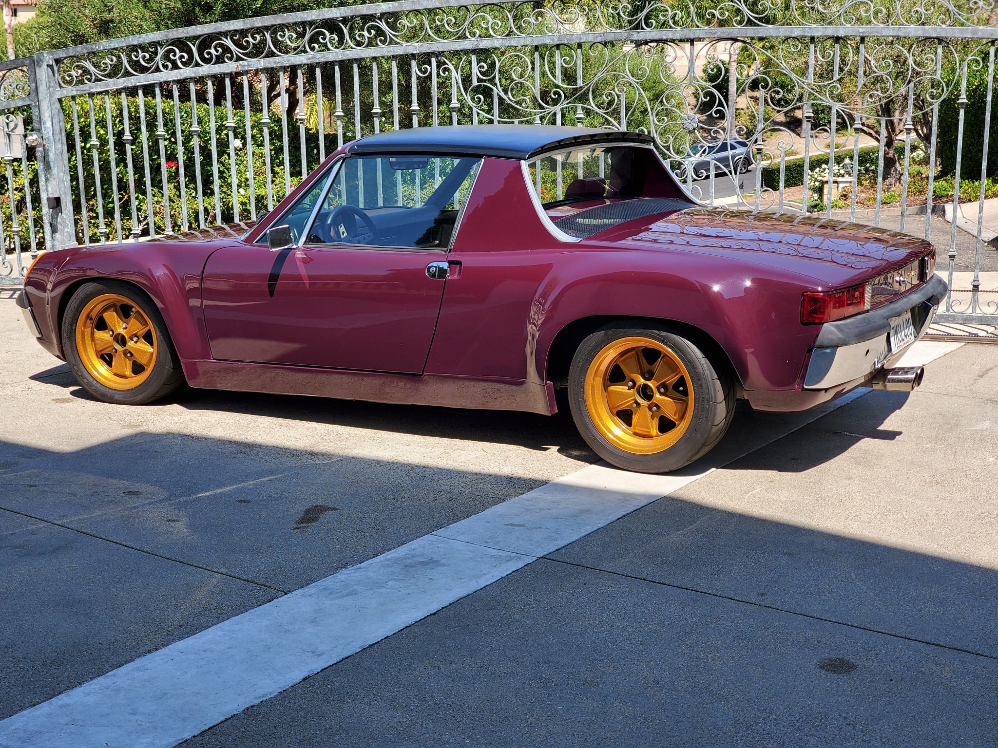 Fuchs-style 15″ wheels were refinished in metallic gold and wear Nitto NT01 tires measuring 205/50 in front and 225/45 out back, which show 2015 date codes. Front calipers said to be sourced from a Boxster were fitted and the brake system was refurbished, and the suspension was also overhauled with an aluminum 911-sourced front cross member, modified spindles, Boge front shocks, and Bilstein coilovers out back.