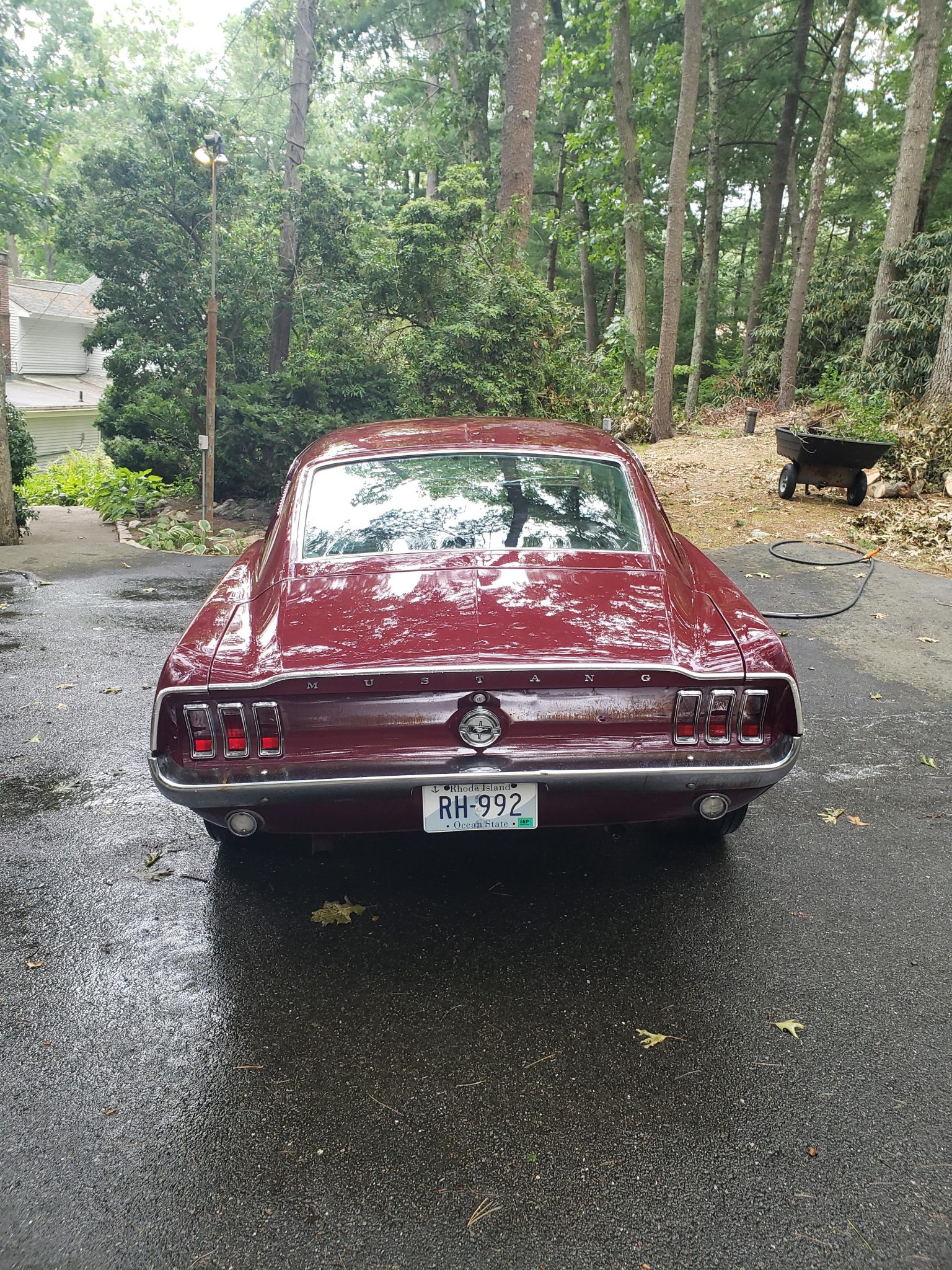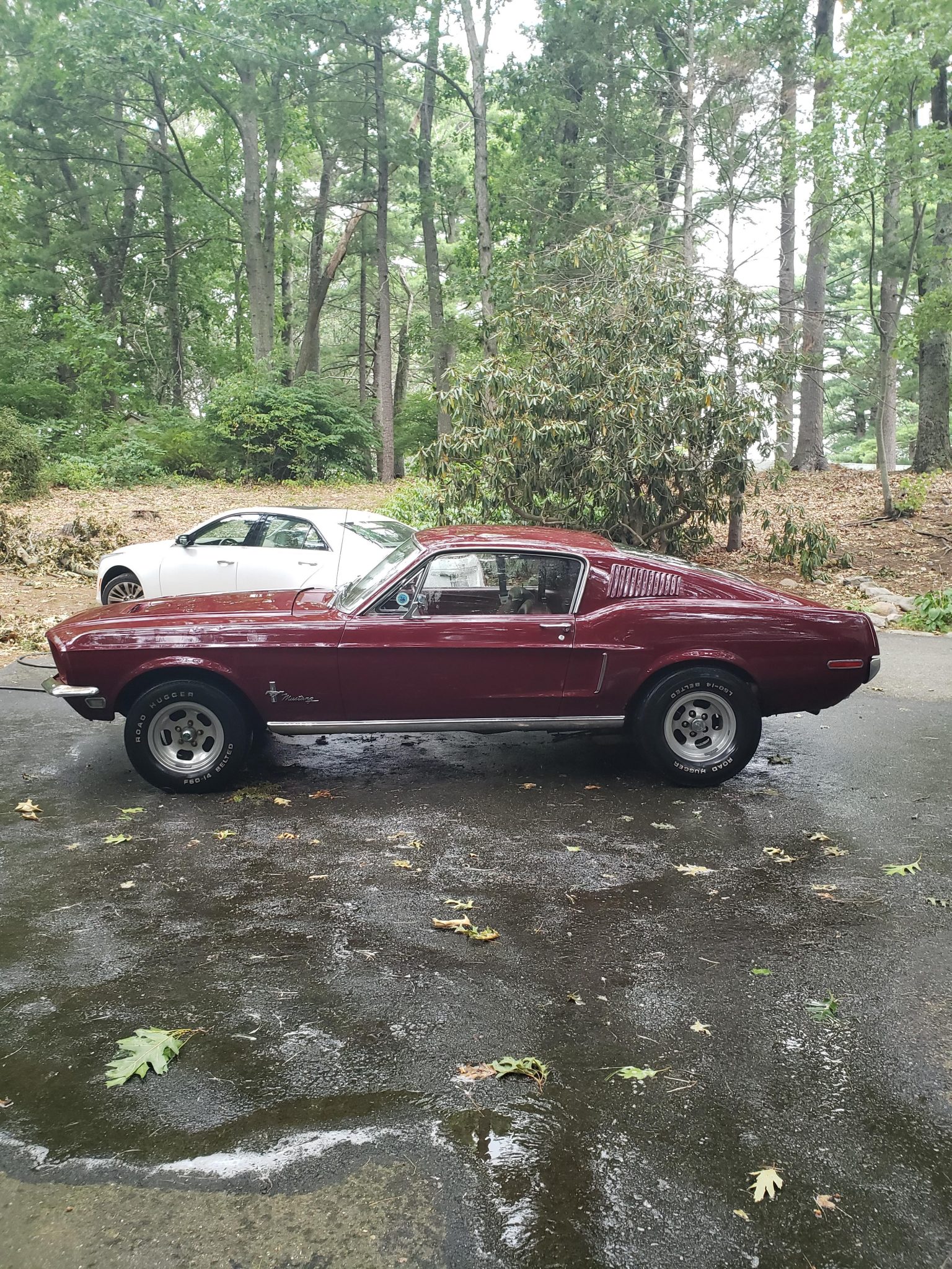 Aftermarket 14″ E-T slotted wheels wear F60-14 Road Hugger tires with raised white lettering. Track bars are installed, and drum brakes are equipped at all four corners.