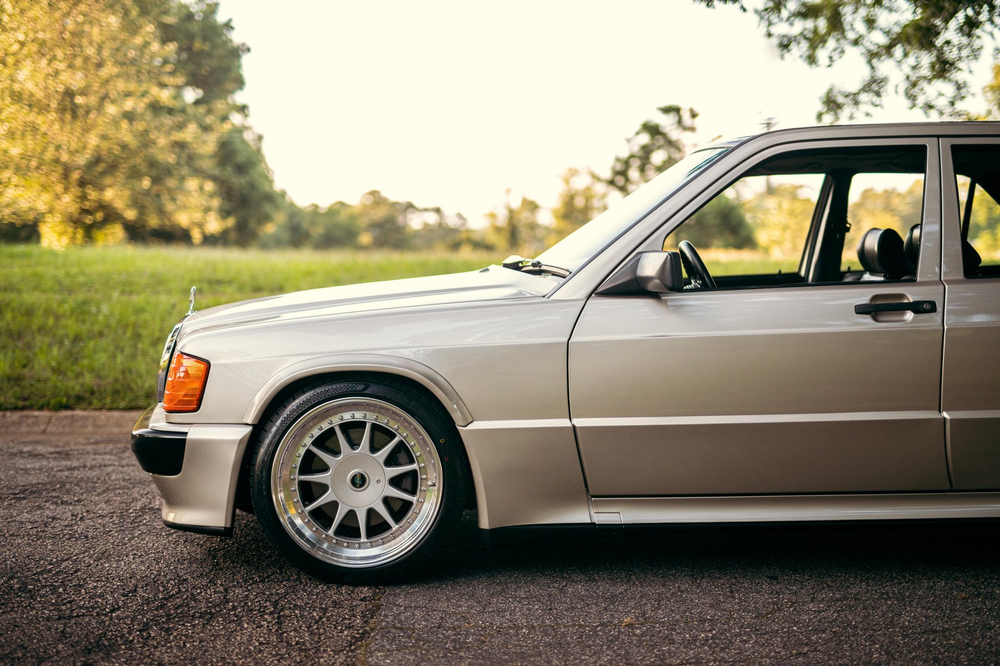 17″ OZ Racing wheels wear Hartge center caps and were refinished by Ehrlich Wheel Works of Mocksville, North Carolina. Newer Nankang tires measure 215/40 in the front and 235/40 in the rear. The factory self-leveling rear suspension was removed and replaced with Bilstein shocks and 400E springs by the seller, who also installed new ball joints, links, tie rod ends, rear control arms, and subframe mounts. Additional suspension modifications include the following: