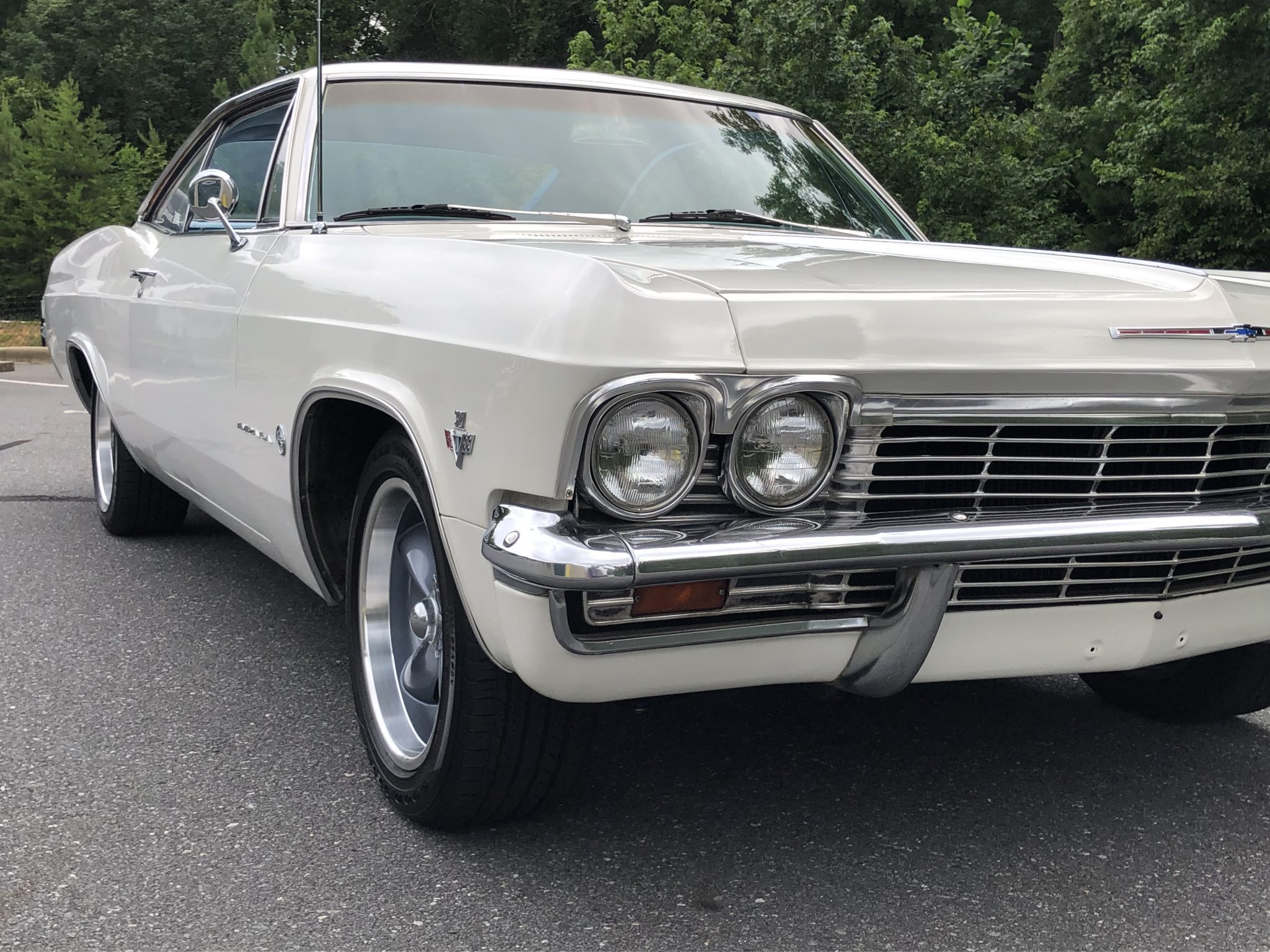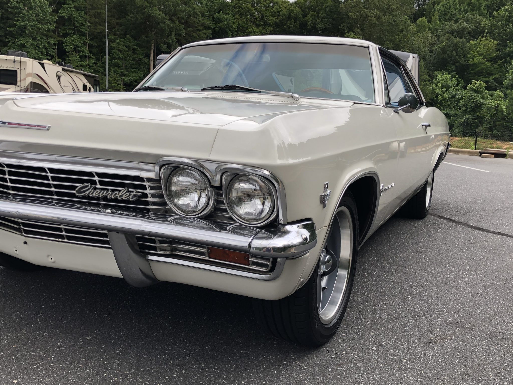 Showwheels Streeter 17” wheels are finished in gray with polished lips and wear Goodyear Eagle Sport tires. Suspension modifications include Bilstein shocks and a larger front sway bar. The seller notes that the four-wheel drum brakes were rebuilt in 2016, and a replacement steering box was also installed at that time.