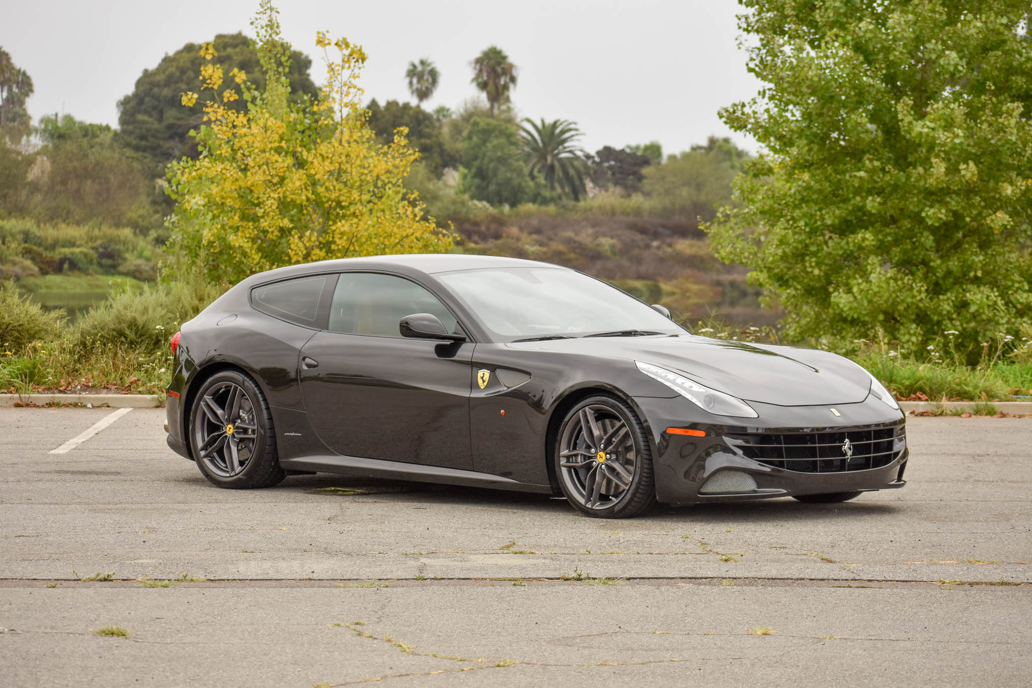 The Carfax report shows a damage report in September 2015, which the seller reports was the result of curb damage to the wheels. The 20″ diamond-cut forged wheels were subsequently refinished in dark gray and wear Pirelli P Zero tires. New rear tires were mounted in August 2020 and the car received a four-wheel alignment at that time. Braking is handled by Ferrari Carbon Ceramic brakes with gray-finished calipers, and the car is equipped with a suspension lift system and magnetorheological dampers.
