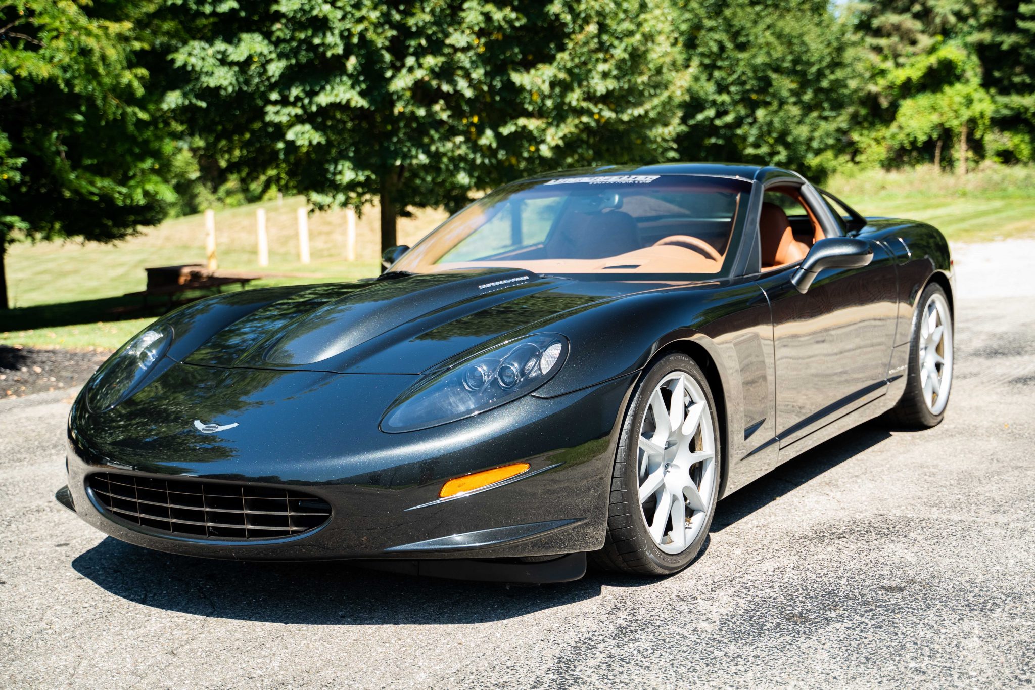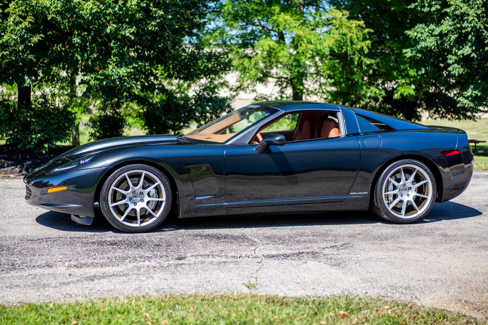 Optional Dymag 19″ and 20″ wheels feature magnesium center sections with carbon fiber barrels and wear Michelin Pilot Sport tires that show date codes from 2007. Stopping power is supplied by Callaway’s optional Le Mans brake package, which included slotted 355mm rotors and multi-piston calipers. The suspension is equipped with a Callaway-Eibach Multi-Pro coilover system with adjustable dampers.