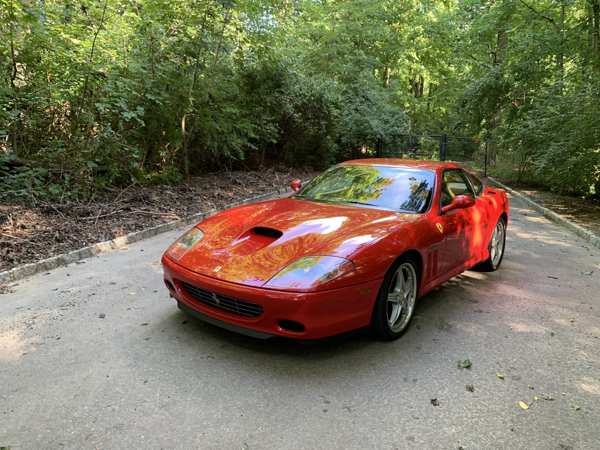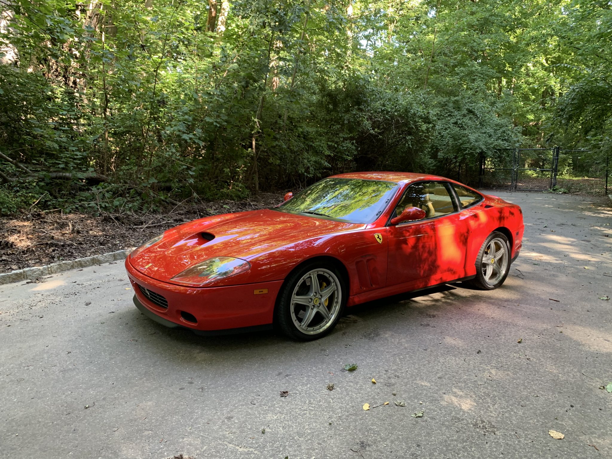 19″ two-piece wheels are wrapped in Pirelli P Zero tires measuring 255/35 up front and 305/30 out back. Braking is handled by cross-drilled and ventilated rotors paired with yellow calipers at all four corners, and this example is fitted with the Fiorano handling package consisting of a stiffer rear stabilizer bar, springs, and bushings as well as quicker steering ratio courtesy of a re-tuned power steering computer. Service in 2015 reportedly included replacing the shock absorber control unit and the Skyhook suspension control computer.
