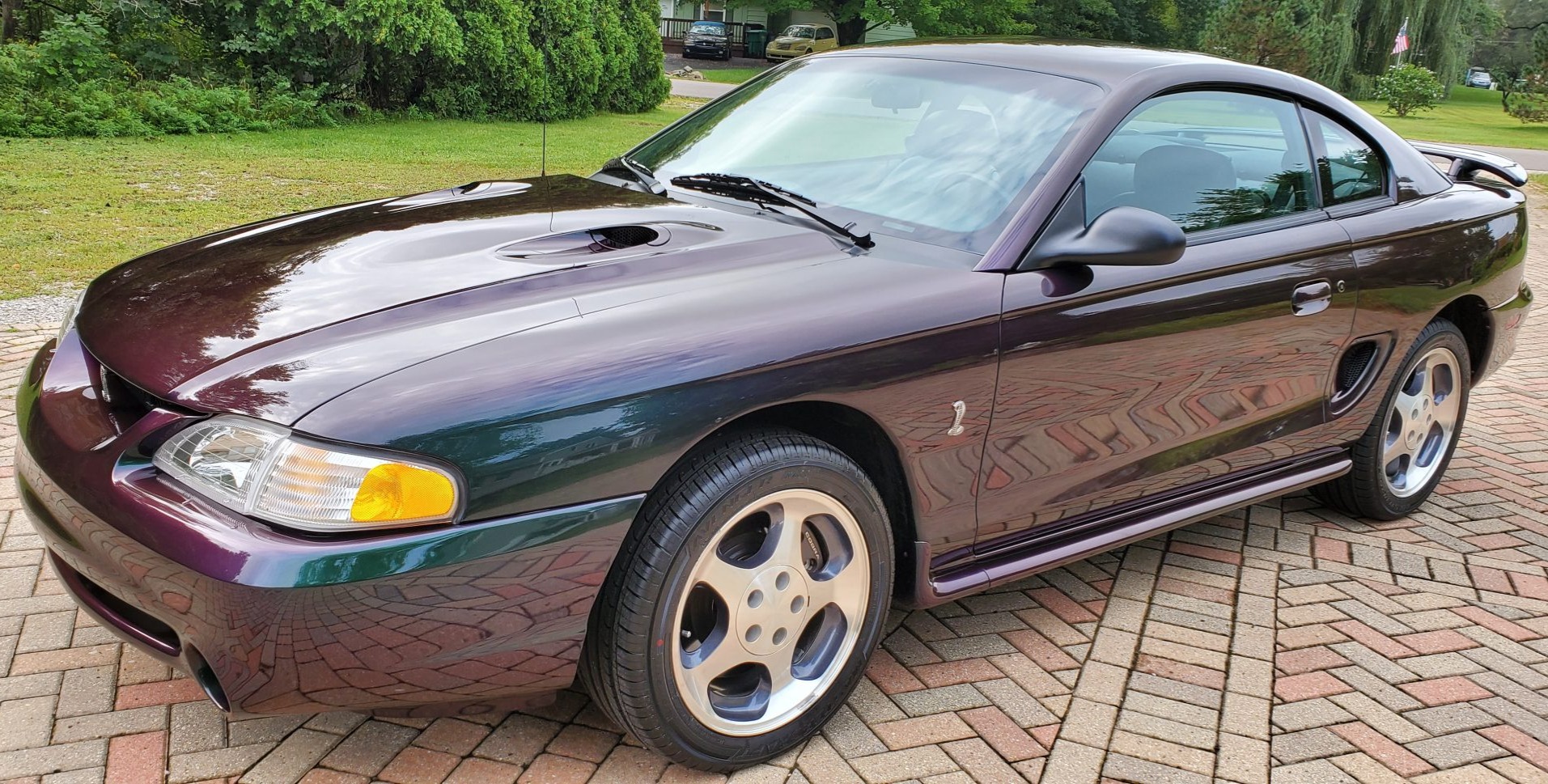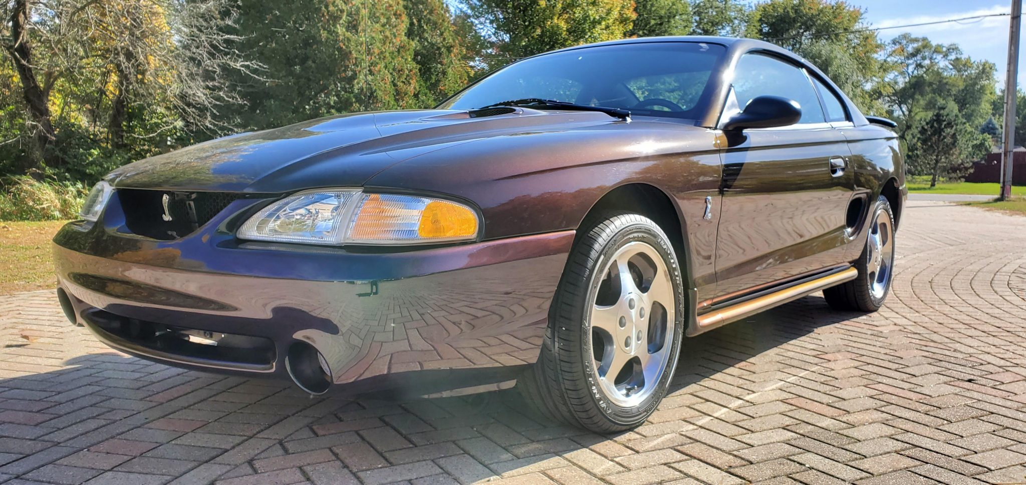 Cobra-specific 17″ aluminum wheels wear Mastercraft Avenger M8 tires that were recently fitted per the seller. The suspension features variable-rate springs and gas-pressurized dampers, and braking is provided by 13″ rotors with dual-piston calipers up front as well as 11.6″ discs with single-piston calipers in the rear.