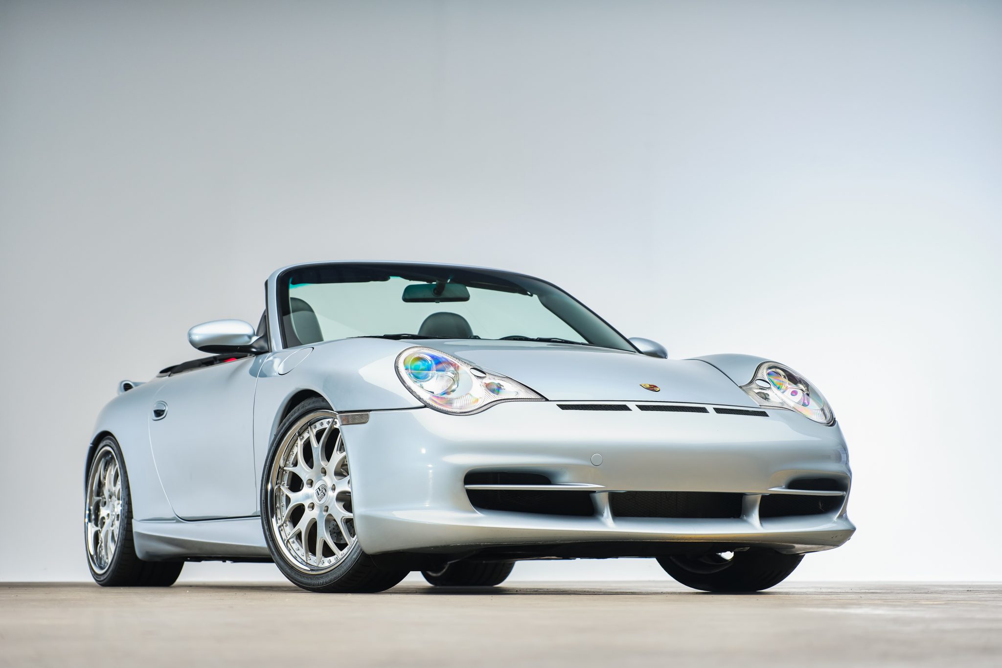 Multi-piece 19″ HRE wheels feature Porsche center caps are mounted with 245/35 front and 285/30 rear Bridgestone Potenza S-04 Pole Position tires. Braking is from black Porsche-branded calipers and cross-drilled rotors at all four corners. The brake fluid was flushed in preparation for the sale.