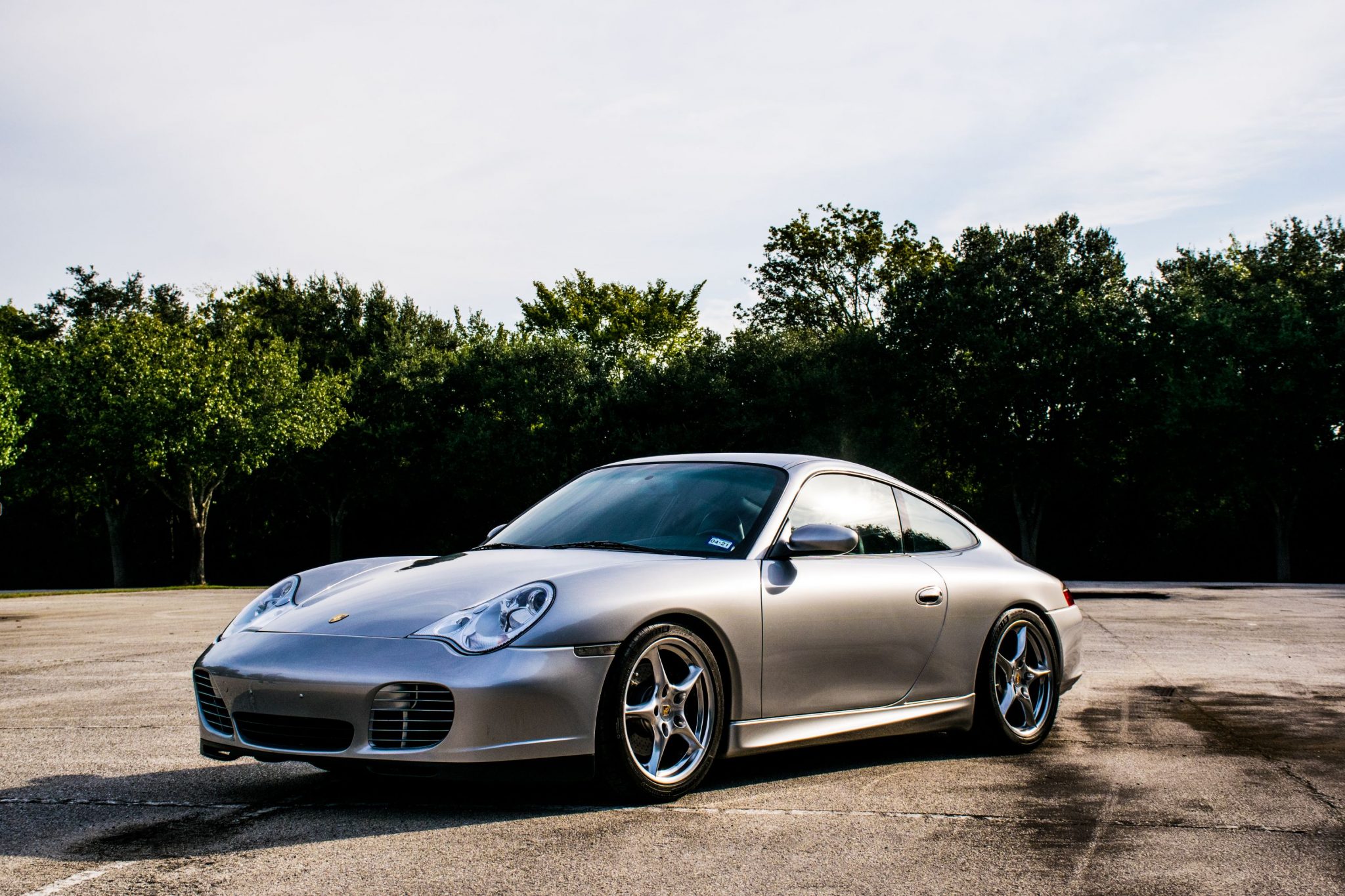 Polished 18” wheels feature Porsche-crest center caps and wear Michelin Pilot Sport 4S tires that were replaced in 2019. The car is equipped with aftermarket H&R sway bars, lowering springs, and wheel spacers. Braking is from black Porsche-branded calipers and cross-drilled rotors all around.