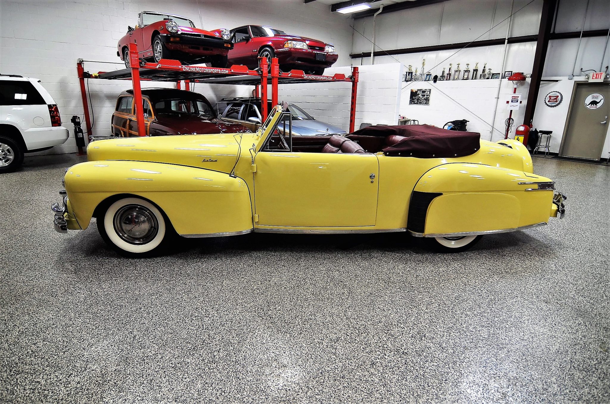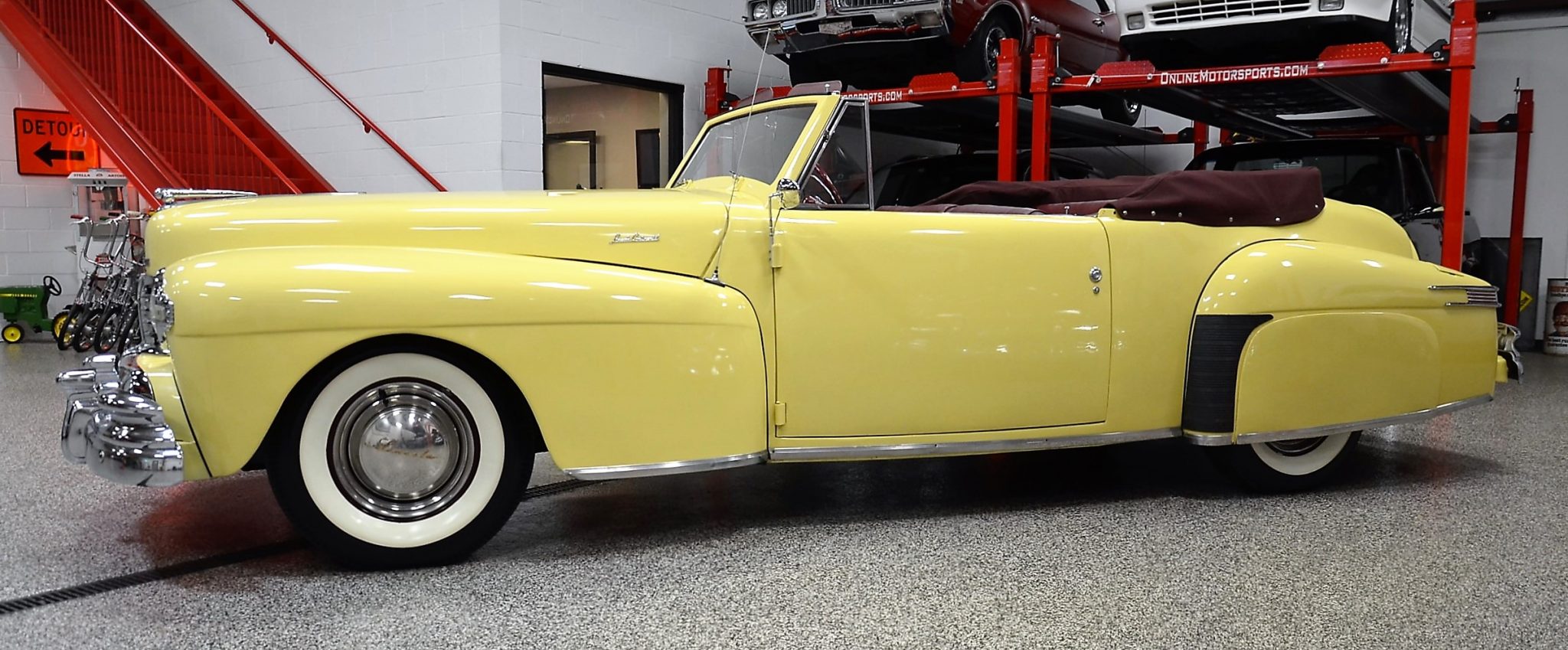 The burgundy convertible top is photographed up close in gallery photographs below and benefits from a motor and pump replacement in 2007. The 15″ steel wheels wear chrome beauty rings, hubcaps with raised gold Lincoln lettering, and Coker Classic wide-whitewall tires mounted in 2009. The Continental featured leaf-spring front and rear suspension as well as drum brakes at all four corners.