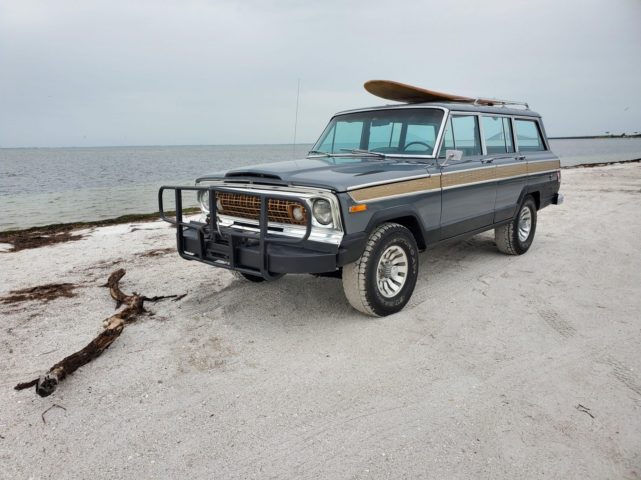 The 15” six-lug wheels are fitted with Jeep center caps and wear GT Radial Adventuro AT3 tires. Disc brakes are equipped up front, while drums are retained out back. Installation of replacement shocks and a brake service including replacement brake lines were reportedly completed during current ownership. The surfboard shown in the photos is not included in the sale.