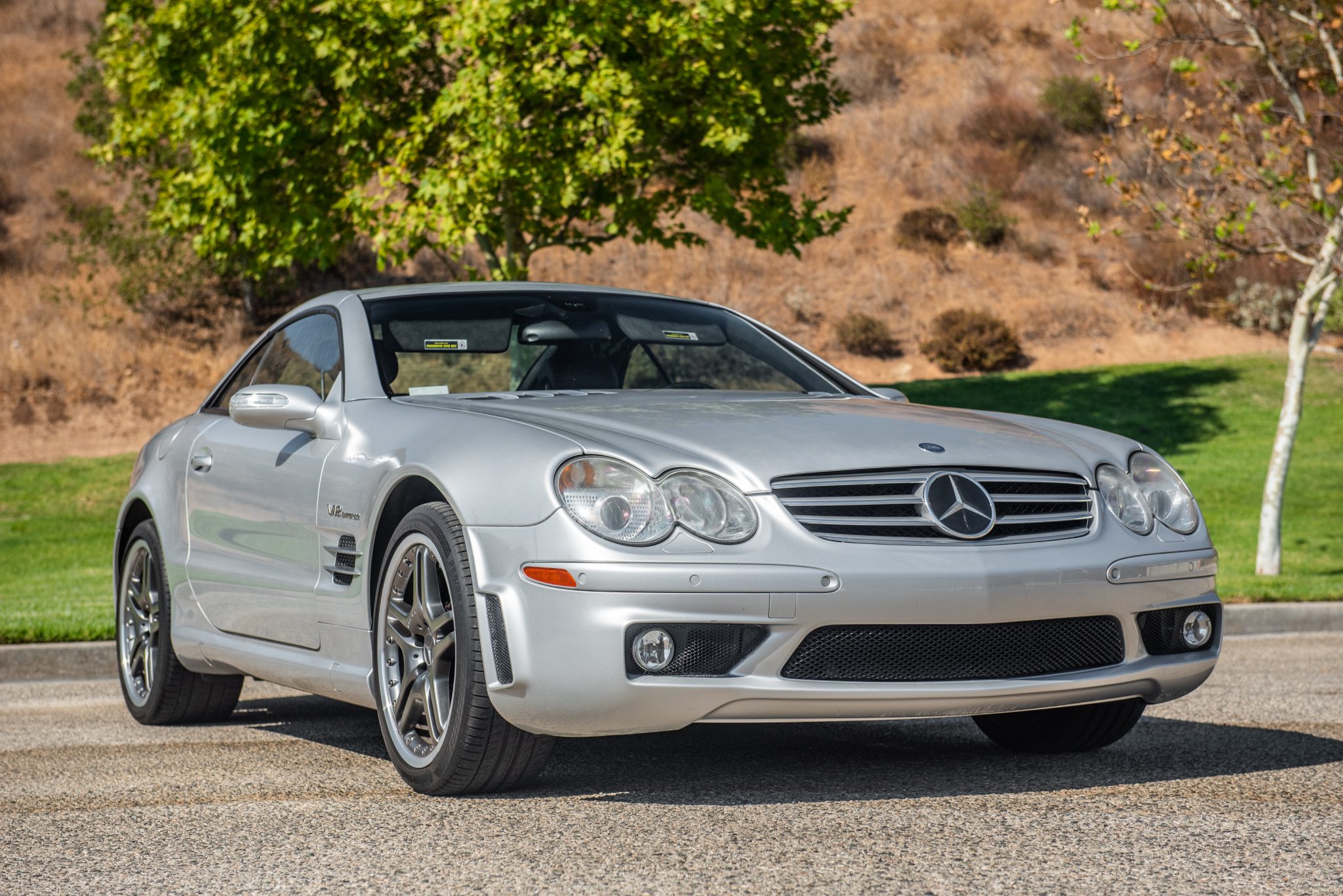 Multi-piece 19″AMG wheels with graphite centers wear Continental ContiSportContact measuring 255/35 at the front and 285/30 at the rear, all of which show 2011 date codes. Braking is by silver-finished multi-piston calipers over cross-drilled and slotted rotors, and the car was factory-equipped with an AMG-tuned Active Body Control (ABC) hydraulic suspension system. The front and rear ABC valve blocks were replaced in 2017.