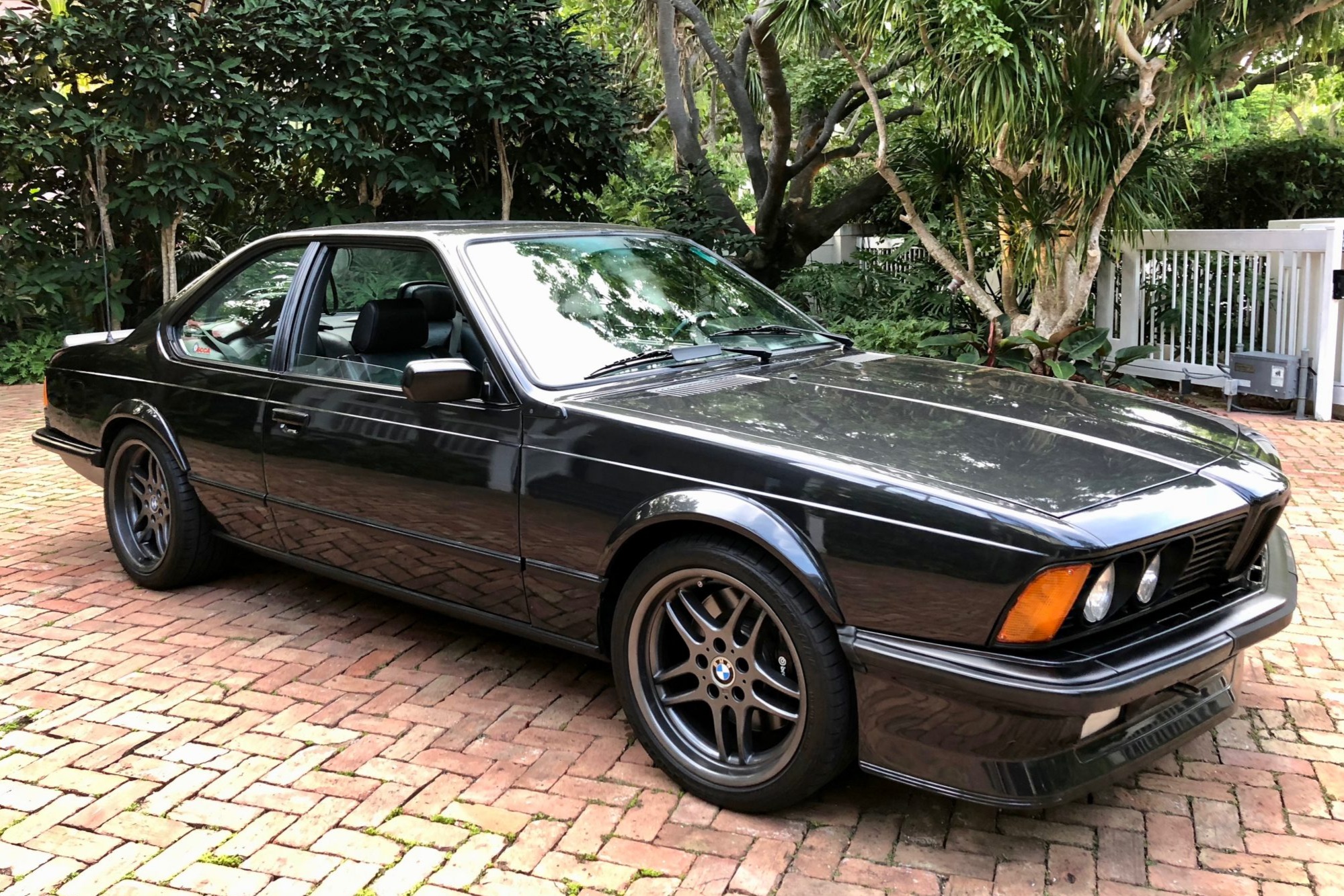 Gray-finished 18″ M-Parallel Style 37 wheels are wrapped in Bridgestone Potenza RE980AS tires. The M635CSi features model-specific springs, a 26mm front sway bar, and specially-tuned Bilstein dampers. Braking is handled by Brembo front calipers over vented rotors.