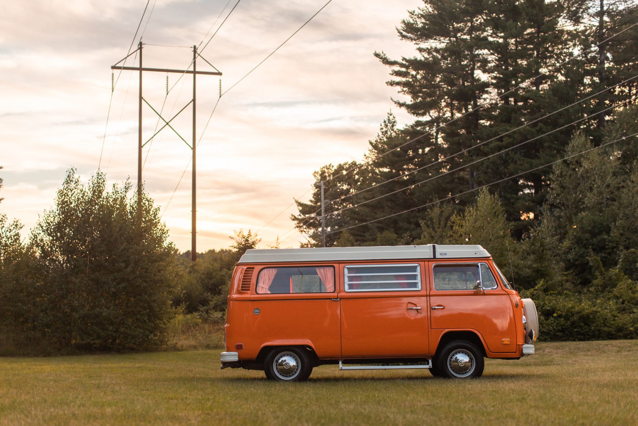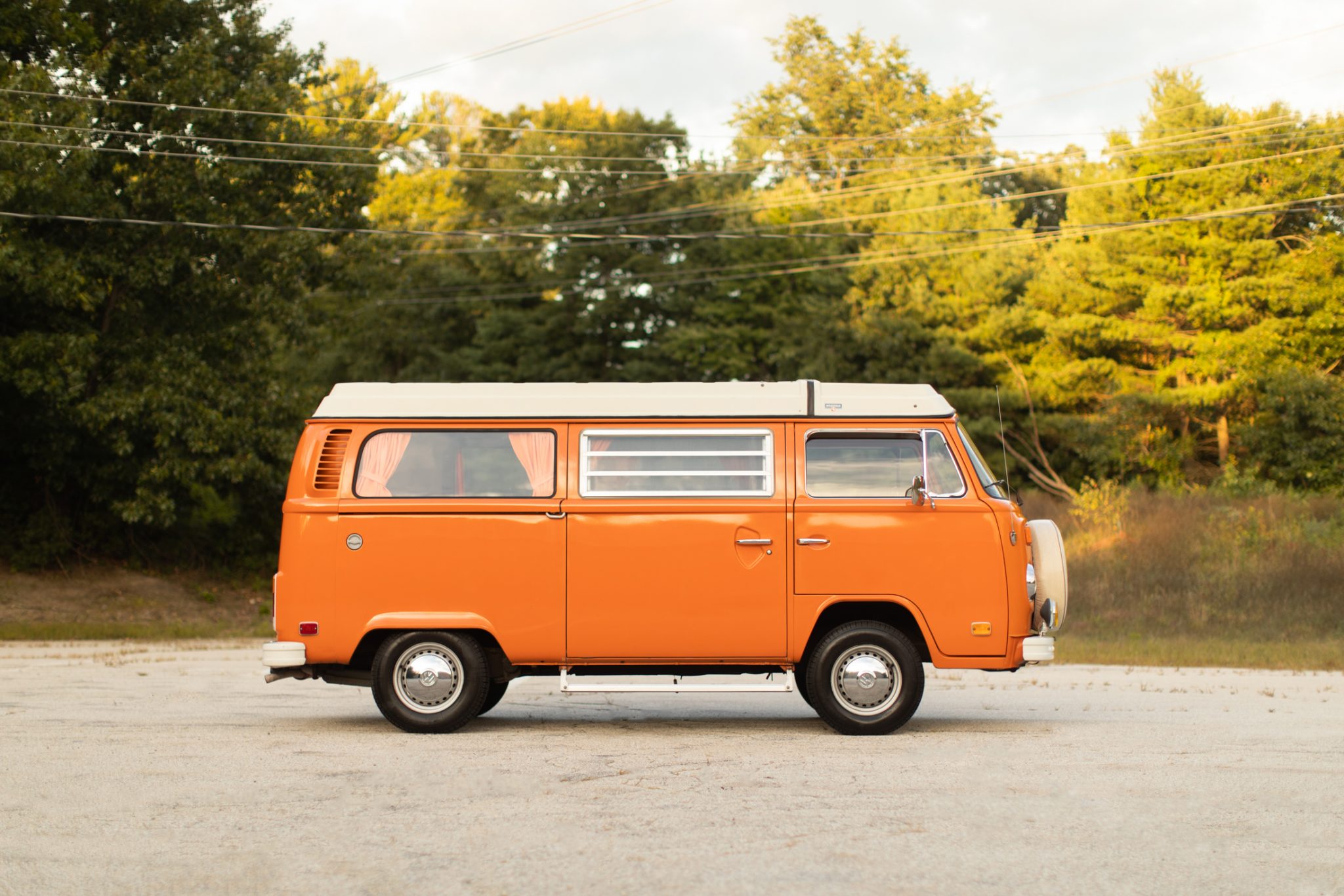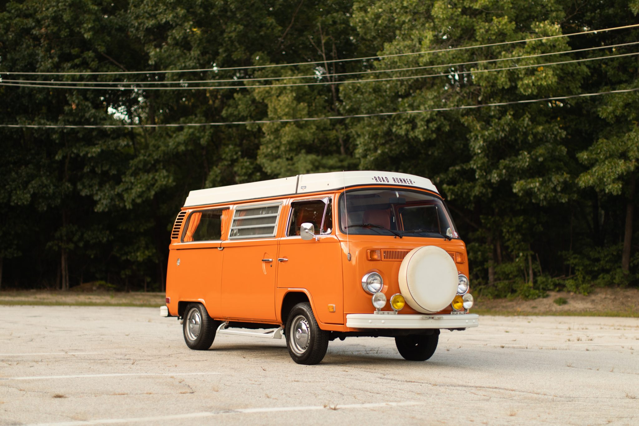 Silver-painted steel 14″ wheels wear polished VW hubcaps and Continental Contact tires.