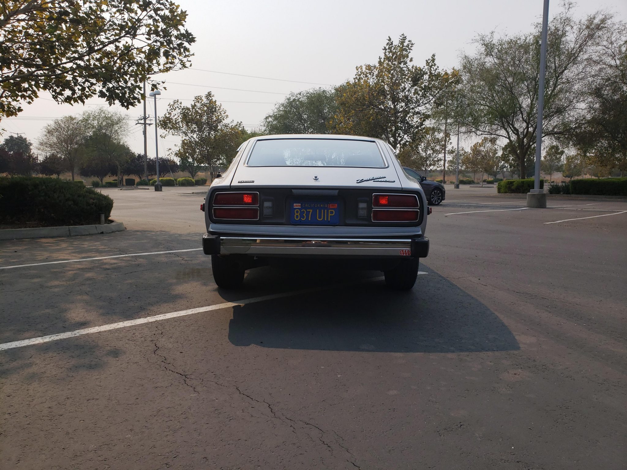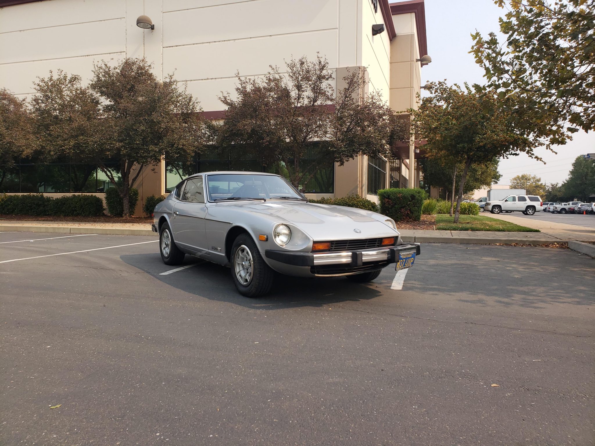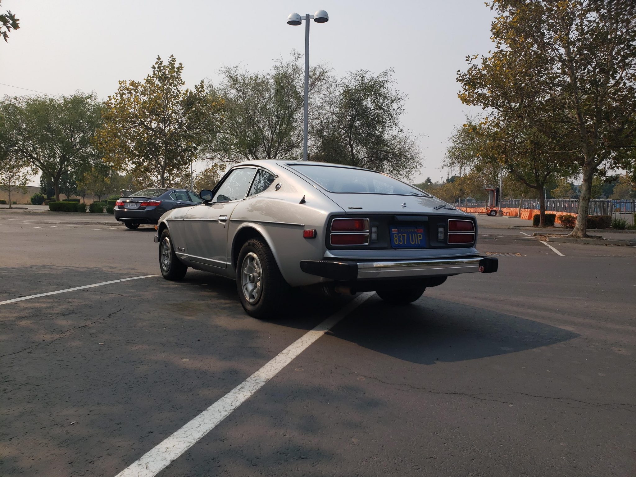 Steel 14″ wheels are fitted with factory Datsun covers and wear 195/70 Michelin Energy MXV4 tires showing 2003 date codes.