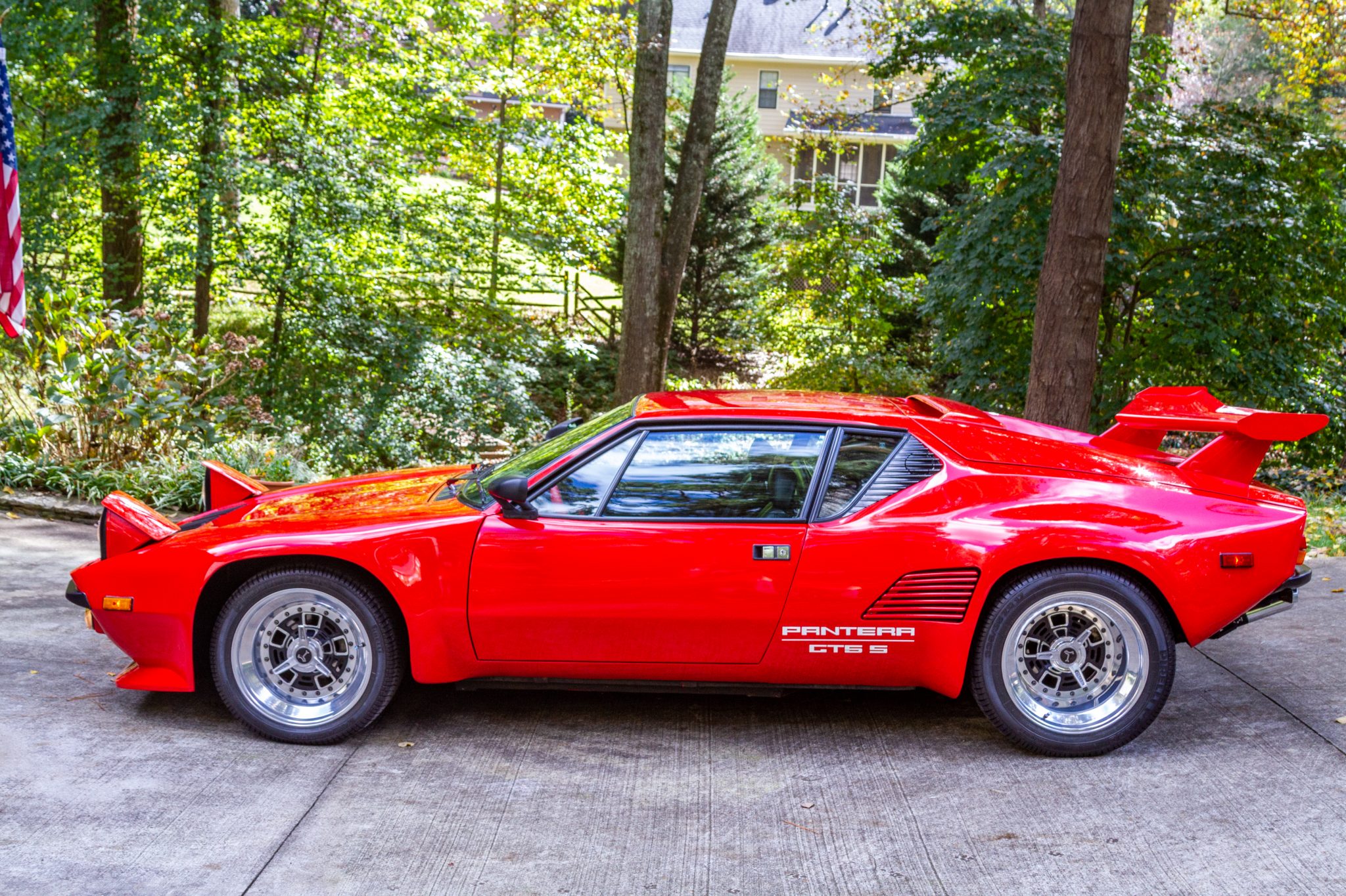 Staggered-width 17″ Ultra wheels feature polished lips and faux spinners and are wrapped in Pirelli P Zero tires measuring 245/40 up front and 335/35 out back. Ventilated four-wheel disc brakes were standard equipment. The seller states that the factory parking brake has been removed and that an aftermarket hydraulic parking brake kit will accompany the car along with a pneumatic front suspension lift kit and the factory red-painted 15″ wheels wearing Pirelli tires.