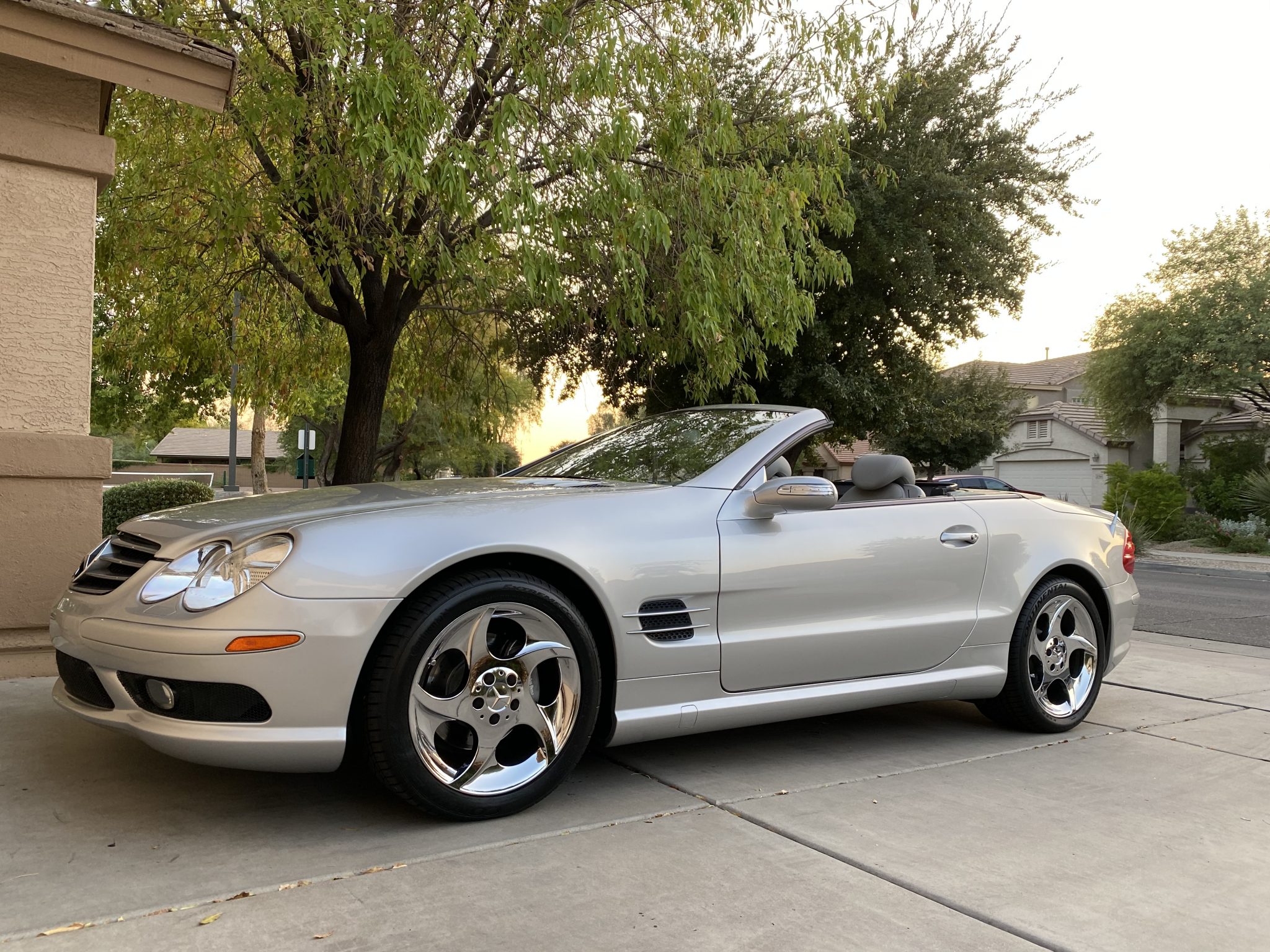 Chrome 18″ turbine-style wheels wear Continental ExtremeContact DWS tires showing 2019 date codes. The car is equipped with Active Body Control, and the selling dealer states that the right front strut was recently replaced.