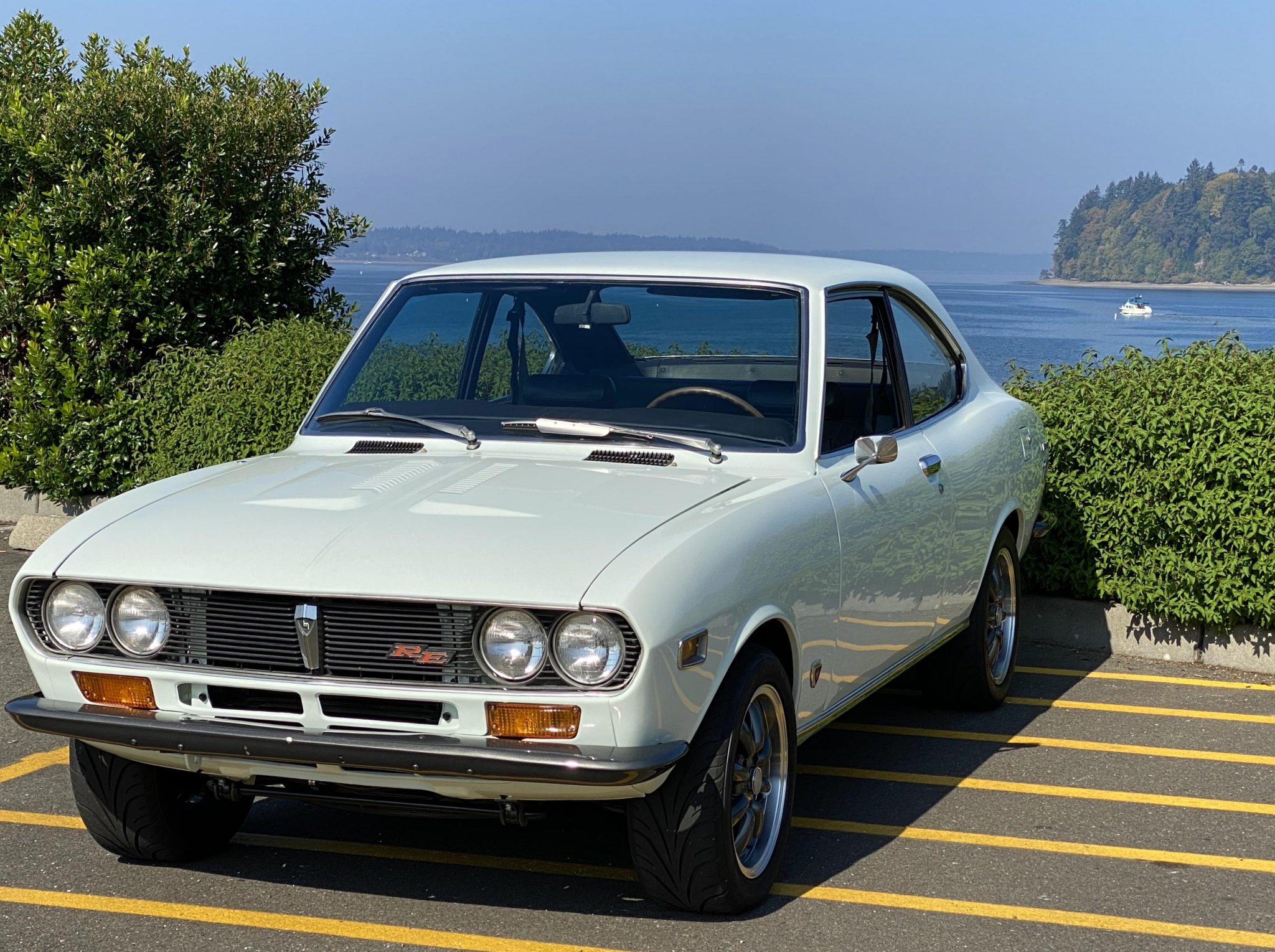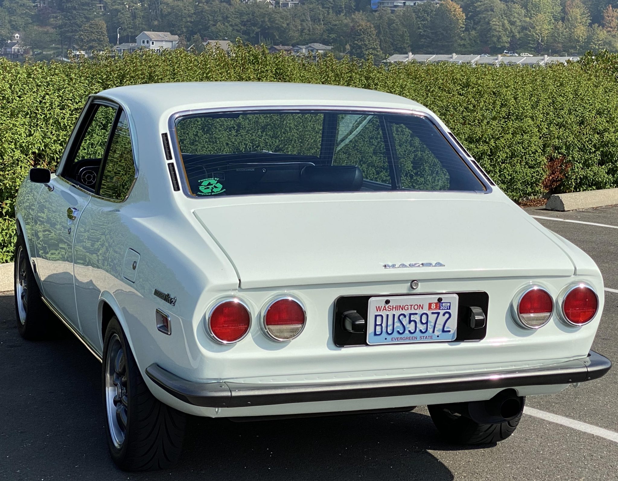 Konig Rewind 15” wheels feature gray centers with polished lips and are wrapped in Federal RS-R tires sized 205/50. The seller notes that the wheel cylinders and brake calipers were rebuilt, and MOOG bushings and ball joints were installed up front. The sway bar, center link, tie rods, and control arms are noted to have been powdercoated black.