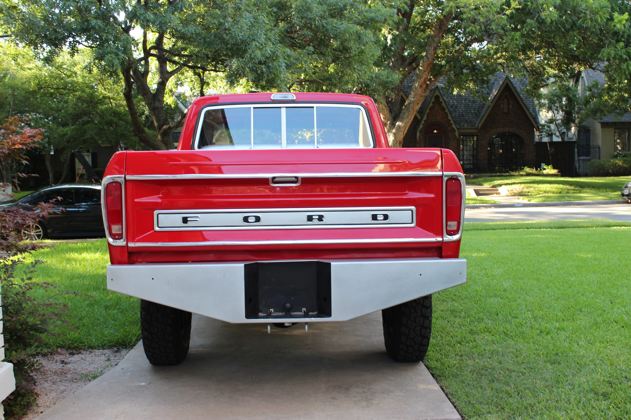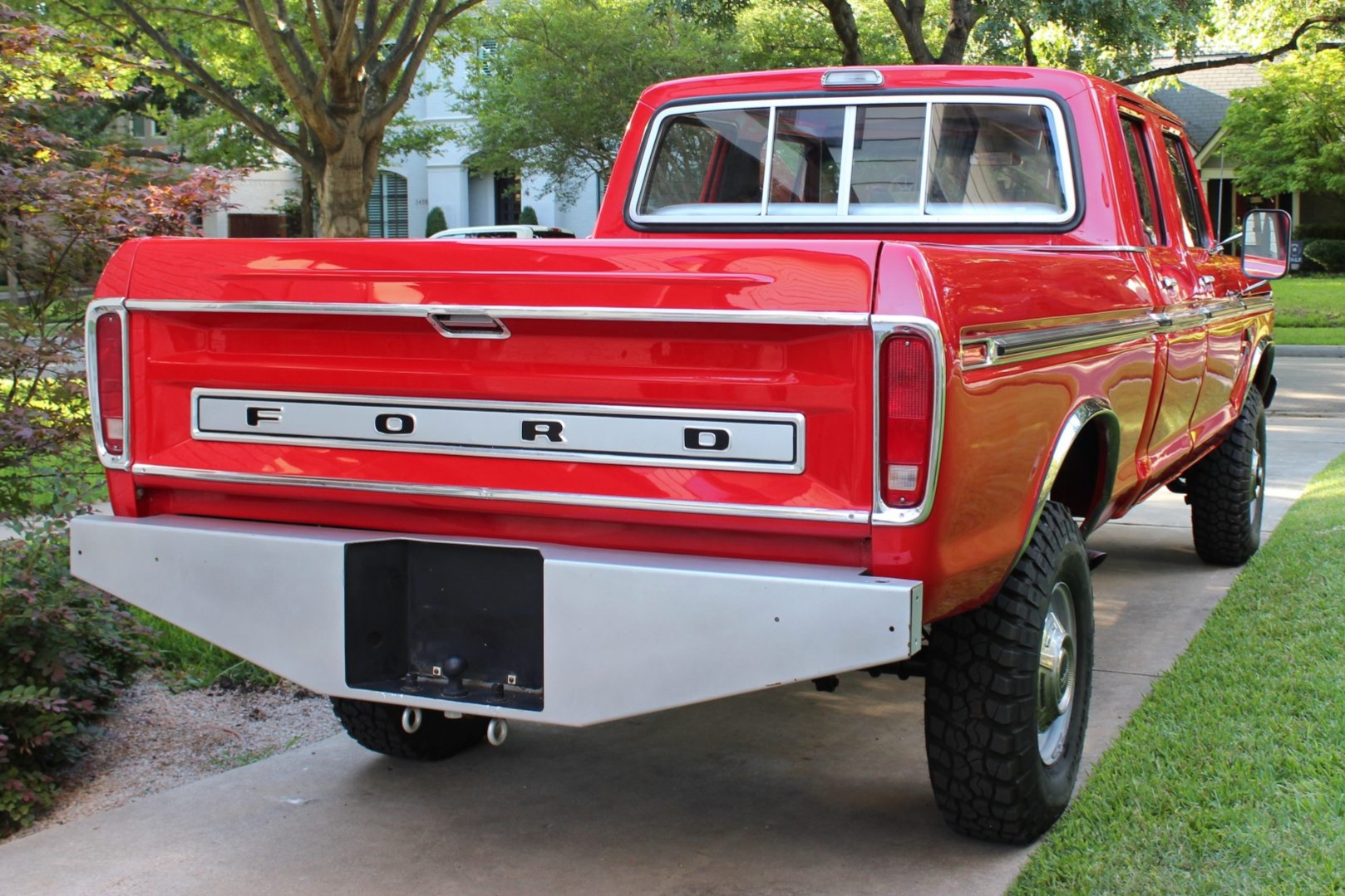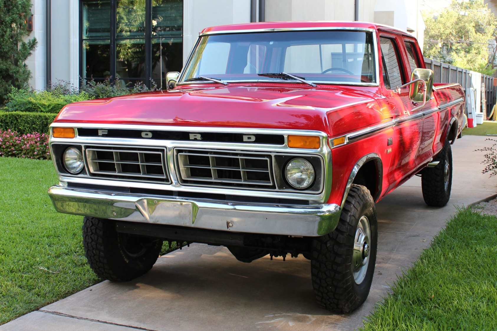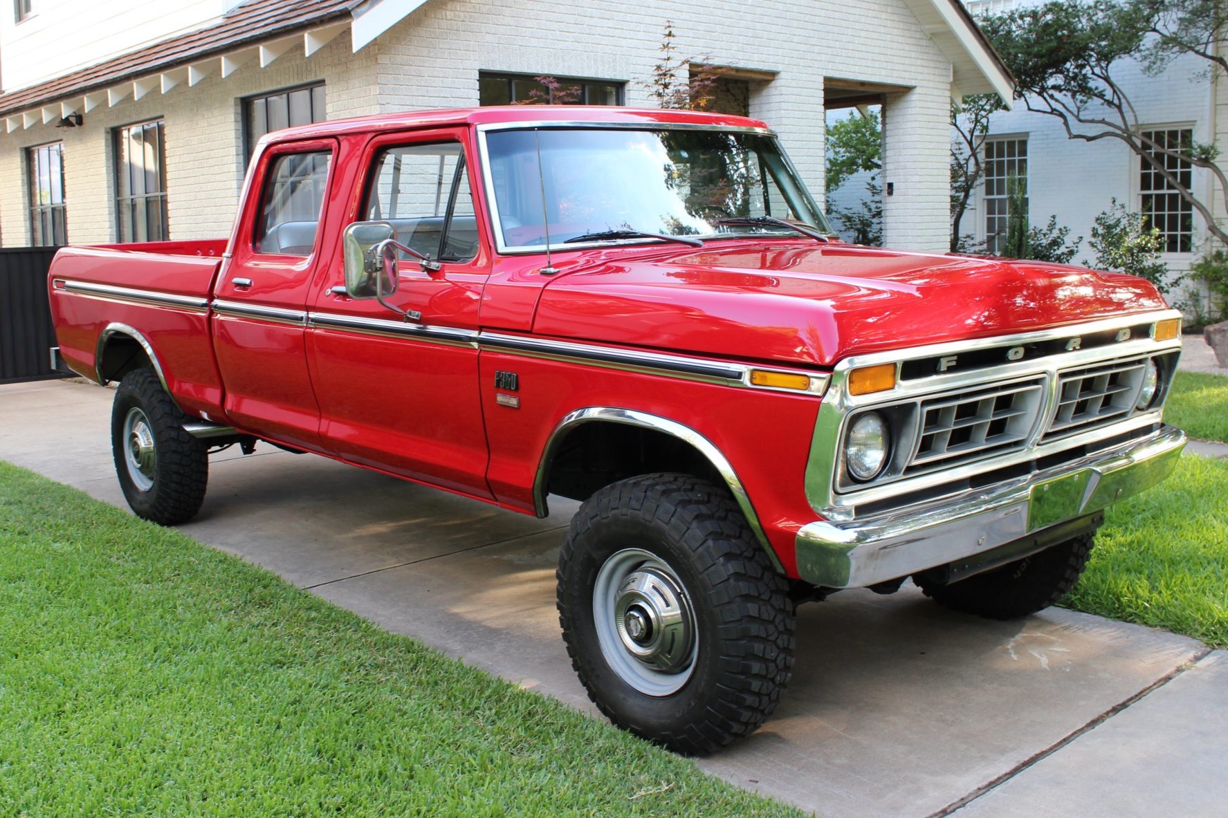 The truck has been lifted over BFGoodrich Mud-Terrain tires mounted on painted steel wheels with period hubcaps, and is equipped with power-assisted steering and brakes.