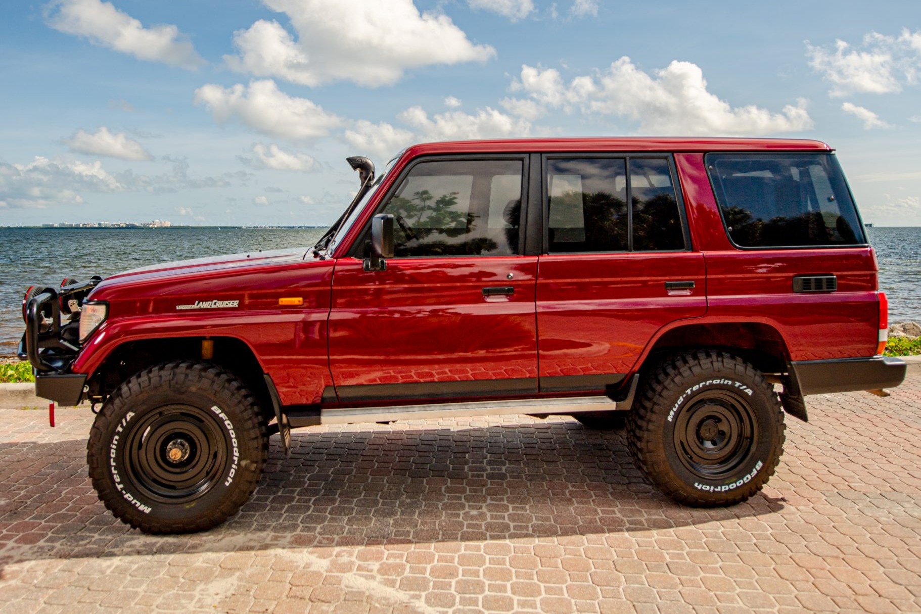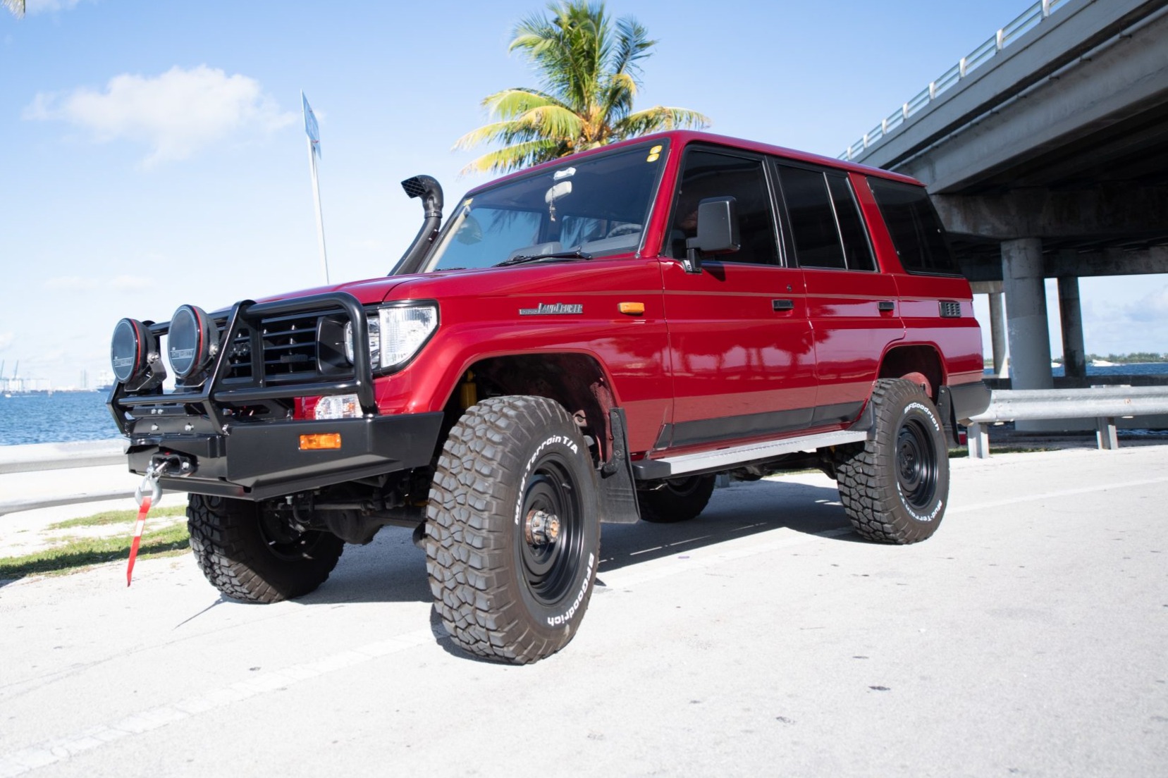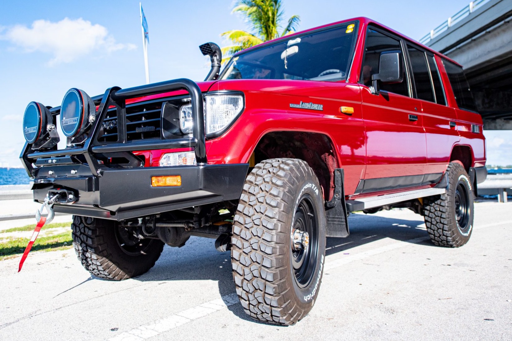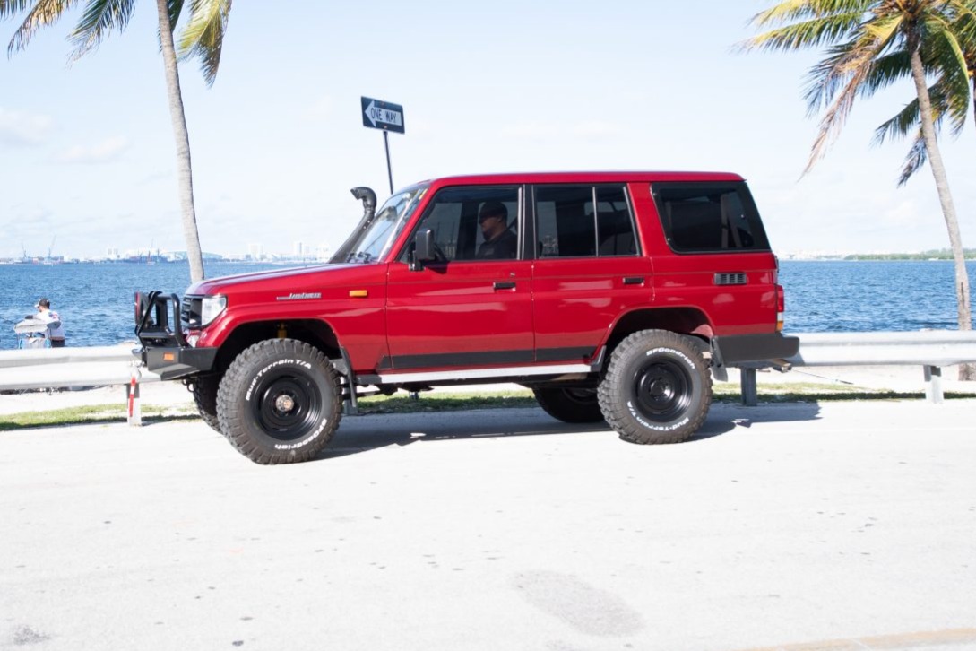 The suspension has been lifted using Old Man Emu components to clear 255/80 BFGoodrich Mud-Terrain KM2 tires on 17″ Fifteen52 wheels. A matching spare is mounted in the rear.