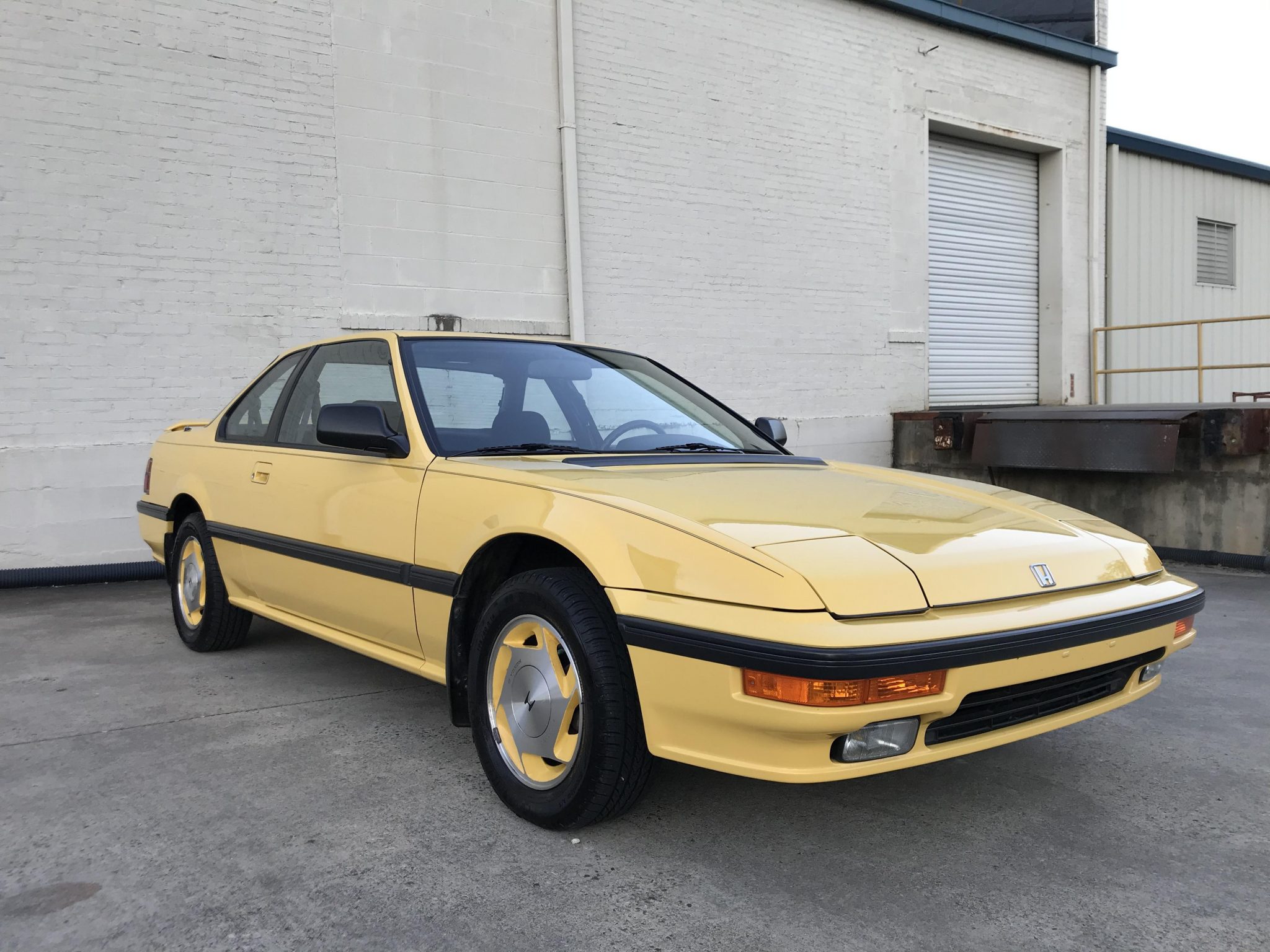 Six-spoke 14″ alloy wheels feature yellow insets and are wrapped in 195/60 Michelin Pilot Exalto A/S tires. The car is equipped with four-wheel disc brakes and independent suspension front and rear.