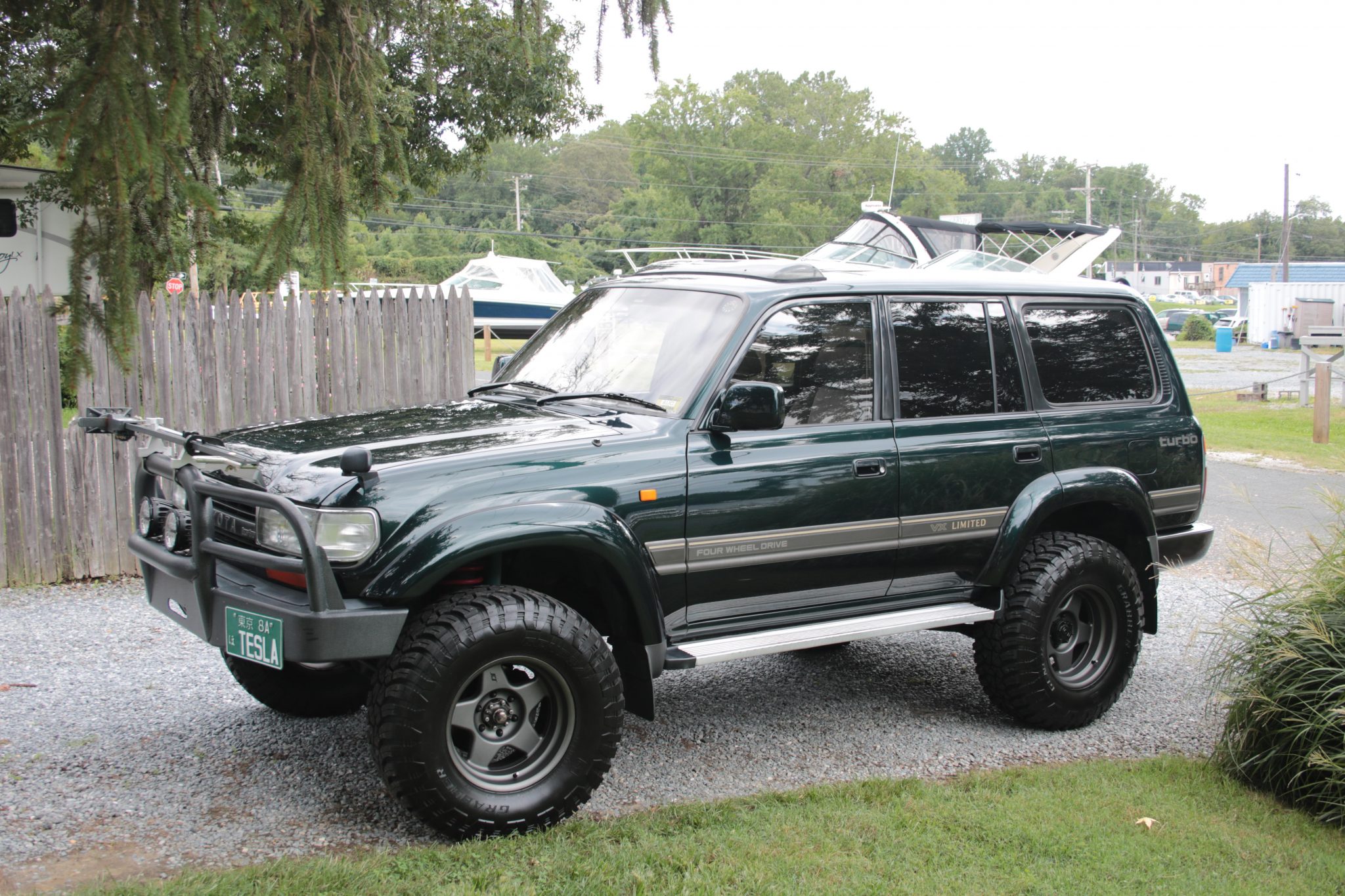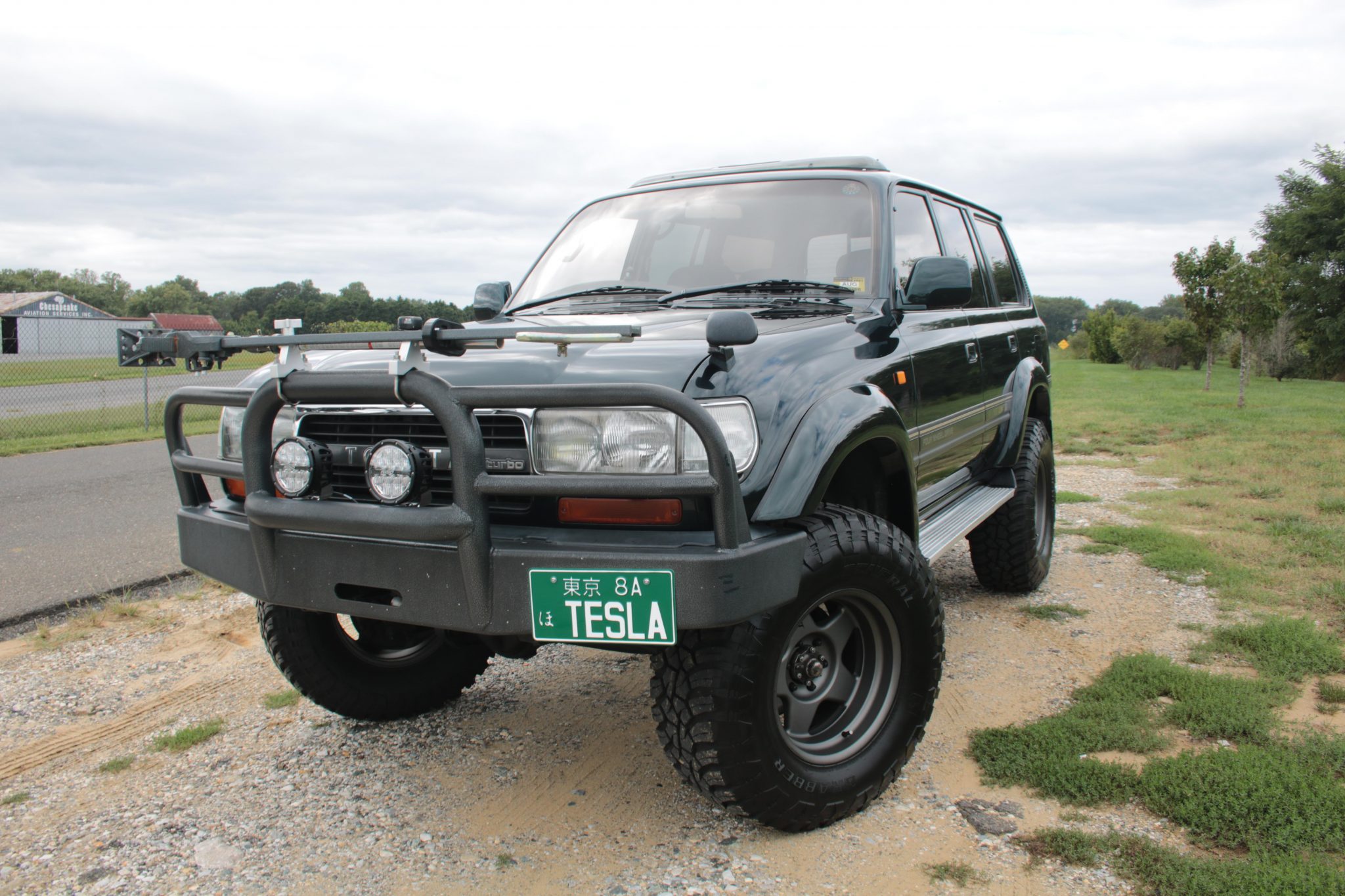 Stealth Custom Series F5 wheels with 35″ General Grabber X3 tires were installed under current ownership, including the matching spare affixed to the swing-out rear carrier. A four-wheel alignment and brake fluid flush were also performed according to the seller.