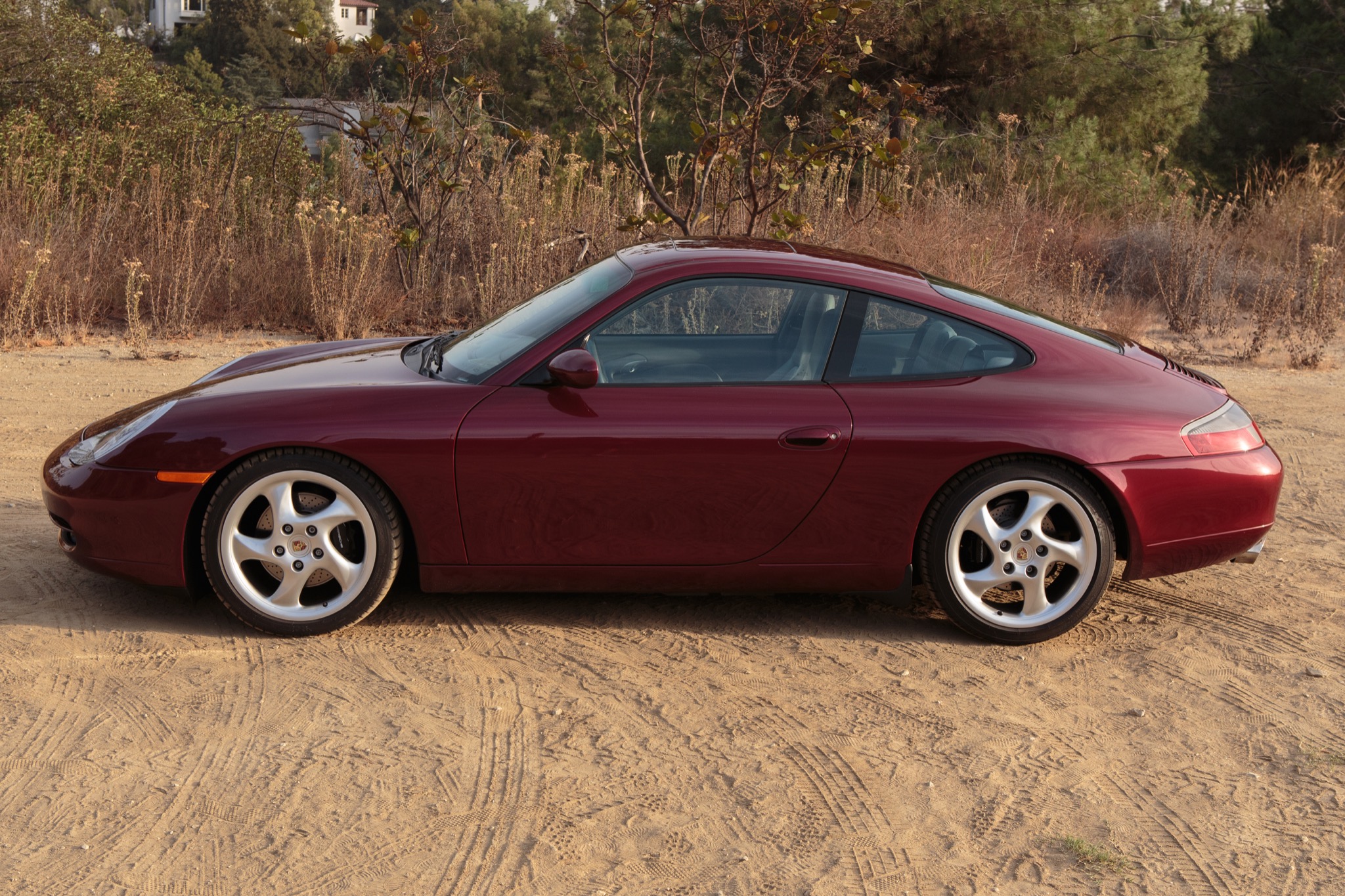 Factory 18” Turbo-look wheels wear Porsche-crest center caps and are wrapped in Michelin Pilot Sport tires that were manufactured in 2019. H&R lowering springs have been added, and the braking system features four-piston alloy calipers paired with vented and cross-drilled rotors. The brake fluid was flushed and the front hood shocks were replaced in December 2019.