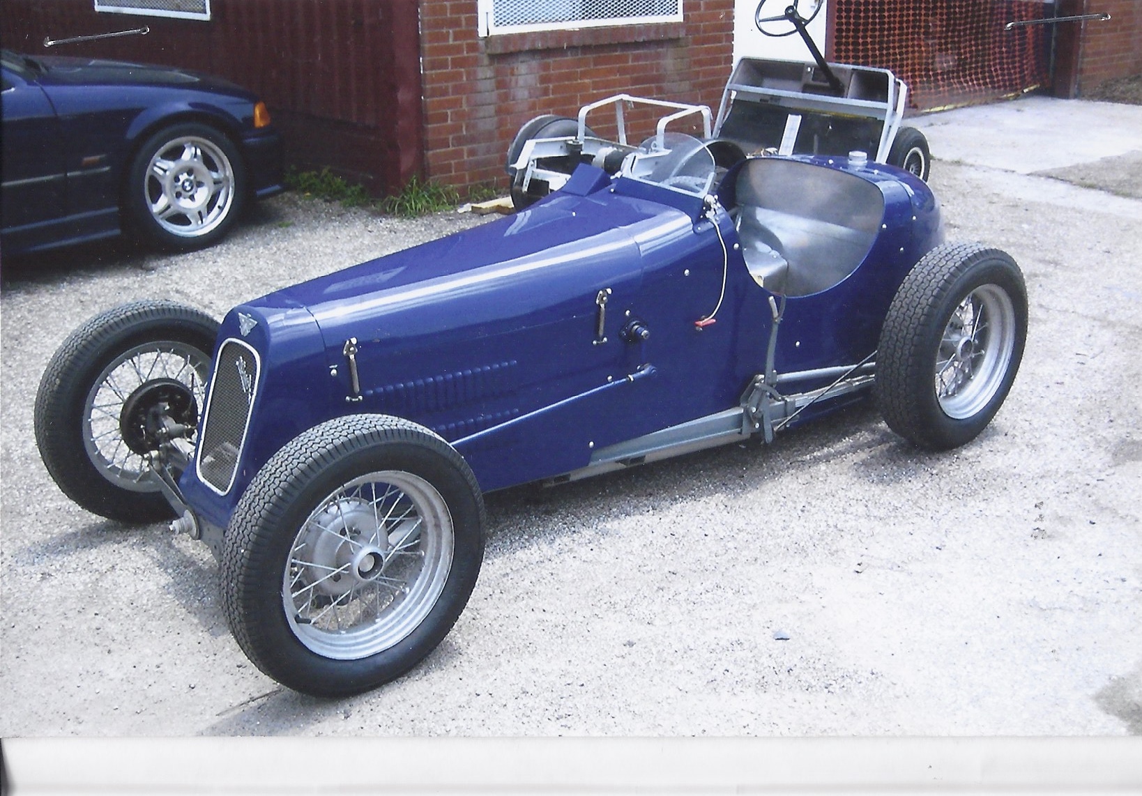 The 15” silver-painted wire wheels are wrapped in period-style Dunlop tires, and hydraulic drums provide stopping power at all four corners. The car utilizes a single front leaf spring and a dropped competition-style front axle.