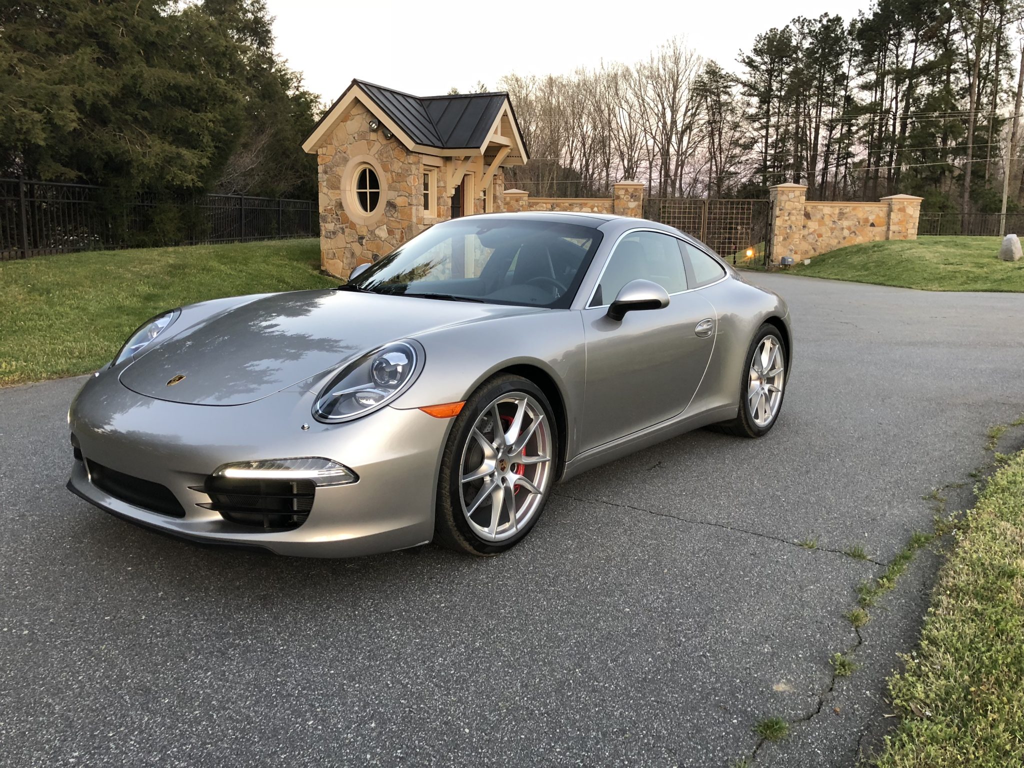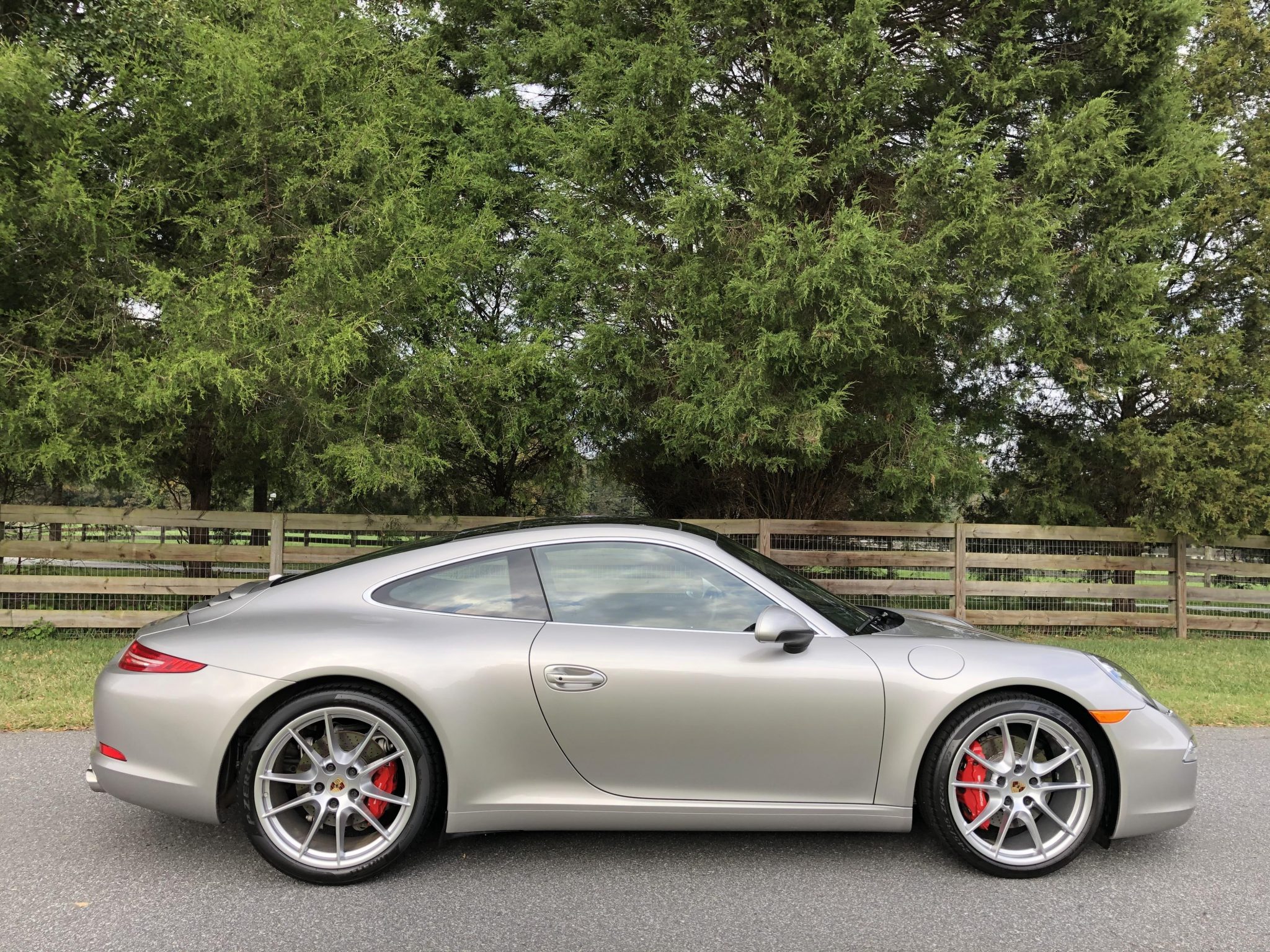 Factory 20″ Carrera S wheels wear Porsche-crest center caps and are wrapped in 245/35 front and 295/30 rear Pirelli P Zero tires. The car is equipped with Power Steering Plus, and the braking system features red six-piston front calipers and cross-drilled rotors all around. Drive-by videos can be viewed here and here.