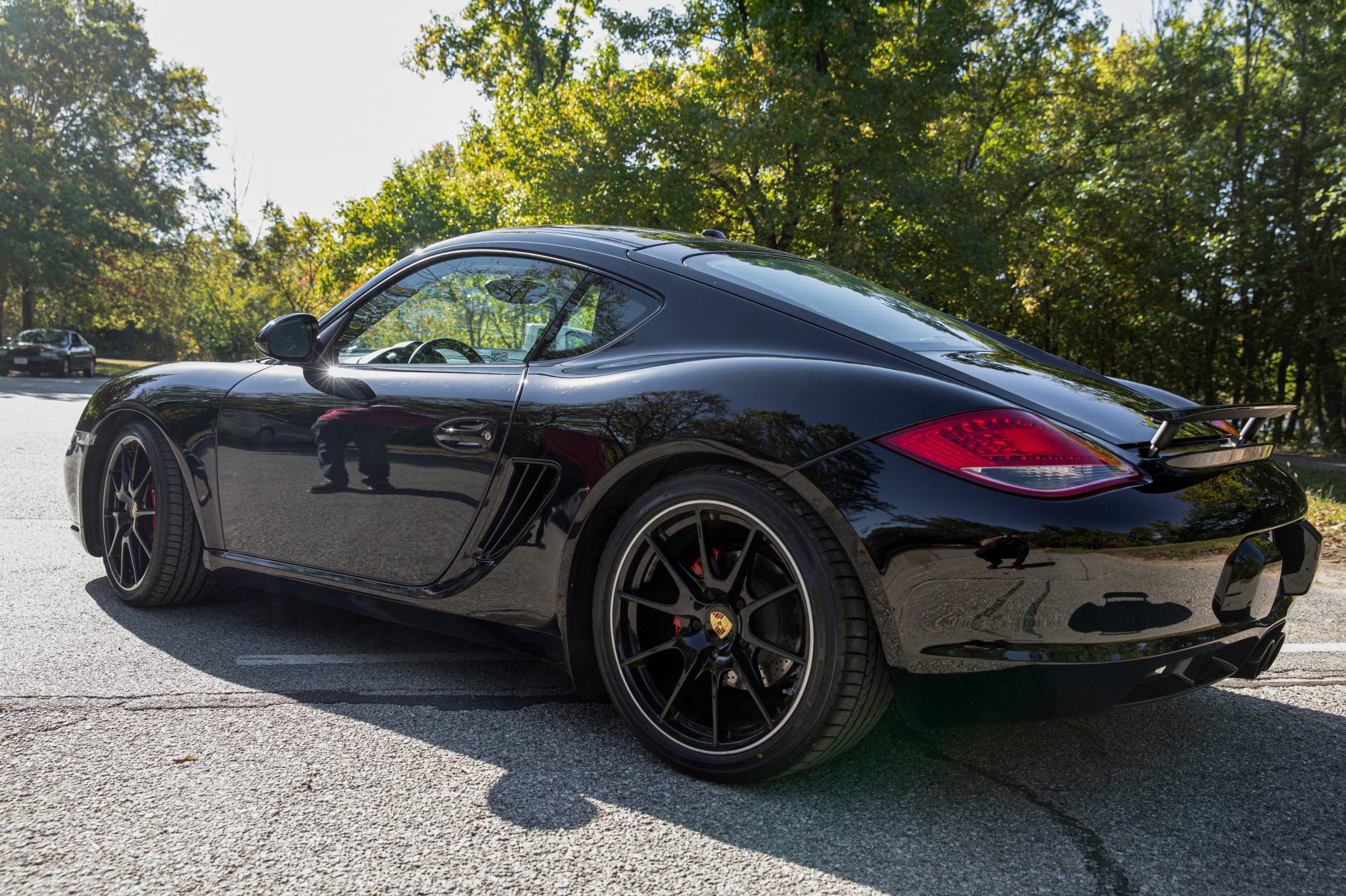 Black 19″ lightweight wheels were shared with the 987 Cayman R and wear Bridgestone Potenza RE050A tires that were fitted in June 2020. Braking is handled by red-painted calipers fitted over cross-drilled rotors. A brake fluid flush was performed by Reid Vann Luxury Import Service of Rock Hill, Missouri in March 2020.