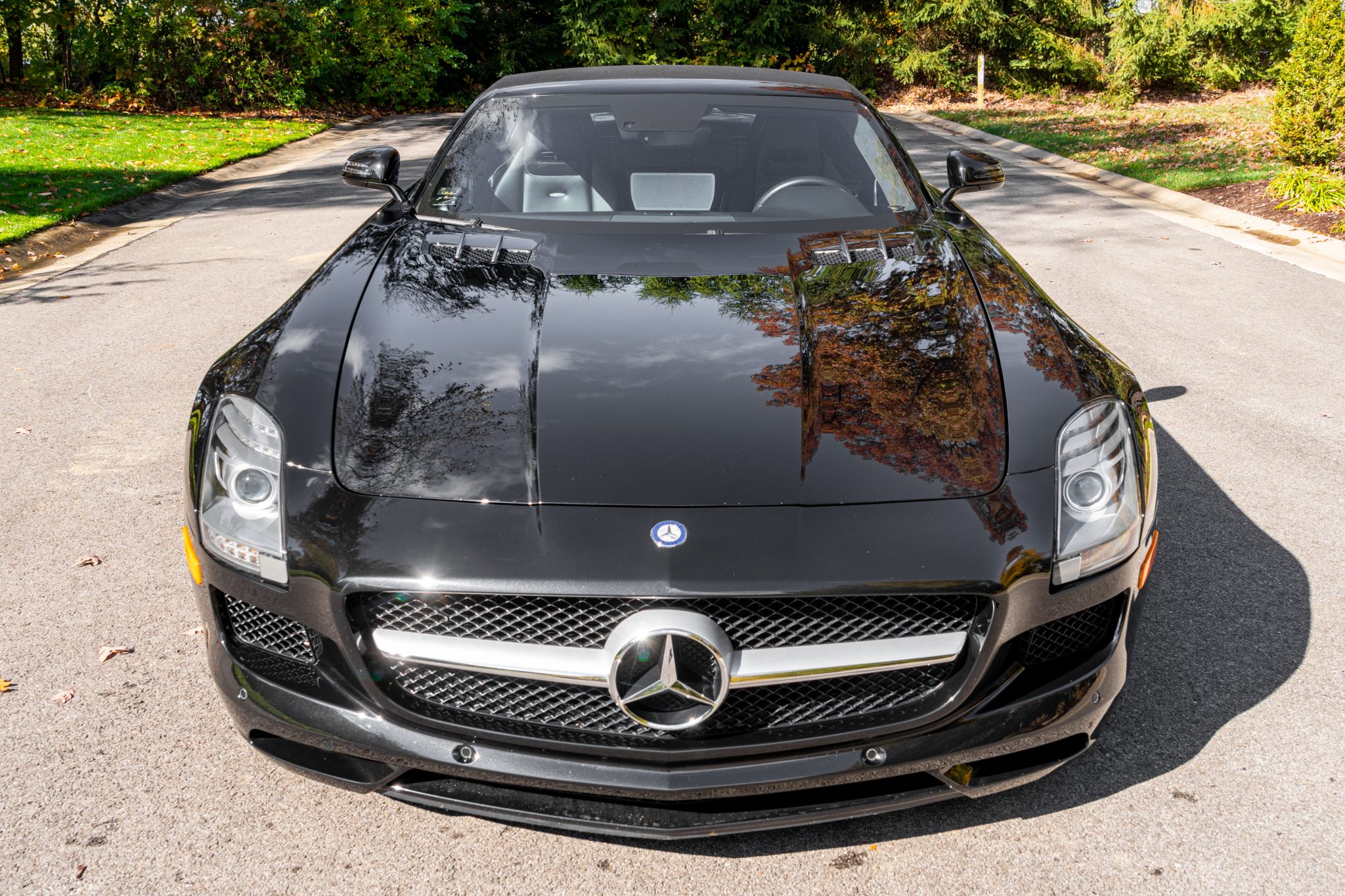 Factory staggered-diameter AMG forged-alloy wheels are mounted with Michelin Pilot Super Sport tires that measure 265/35R-19 up front and 295/30R-20 in the rear. Silver six- and four-piston AMG calipers are paired with cross-drilled and slotted steel rotors.