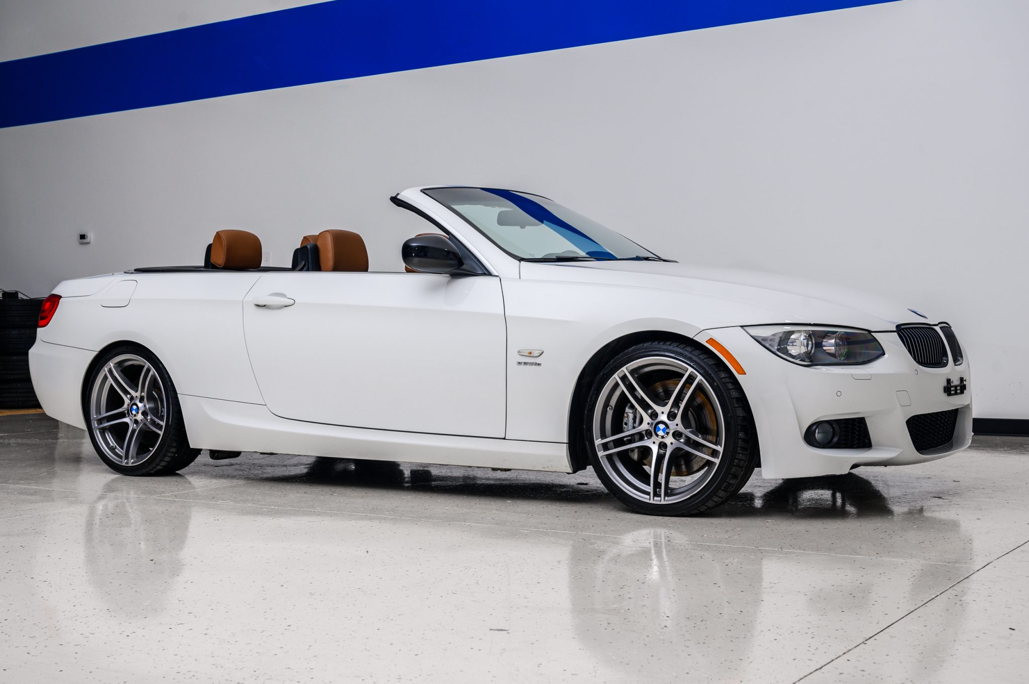 Staggered-width 19″ Style 313 wheels wear Bridgestone Potenza RE050A tires. An M Sport suspension is equipped, which lowers the ride height by 0.4″ compared to the standard 335i.
