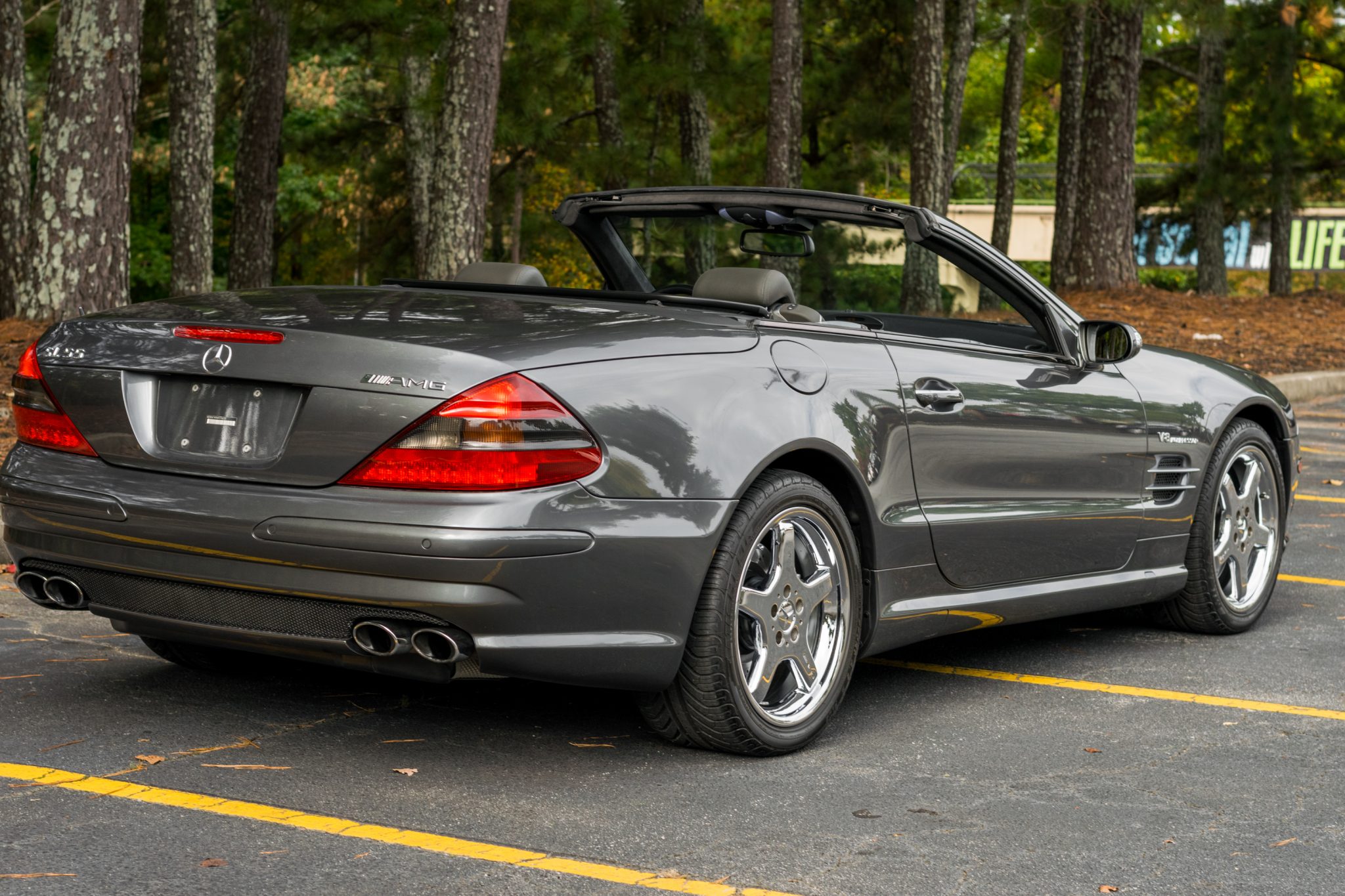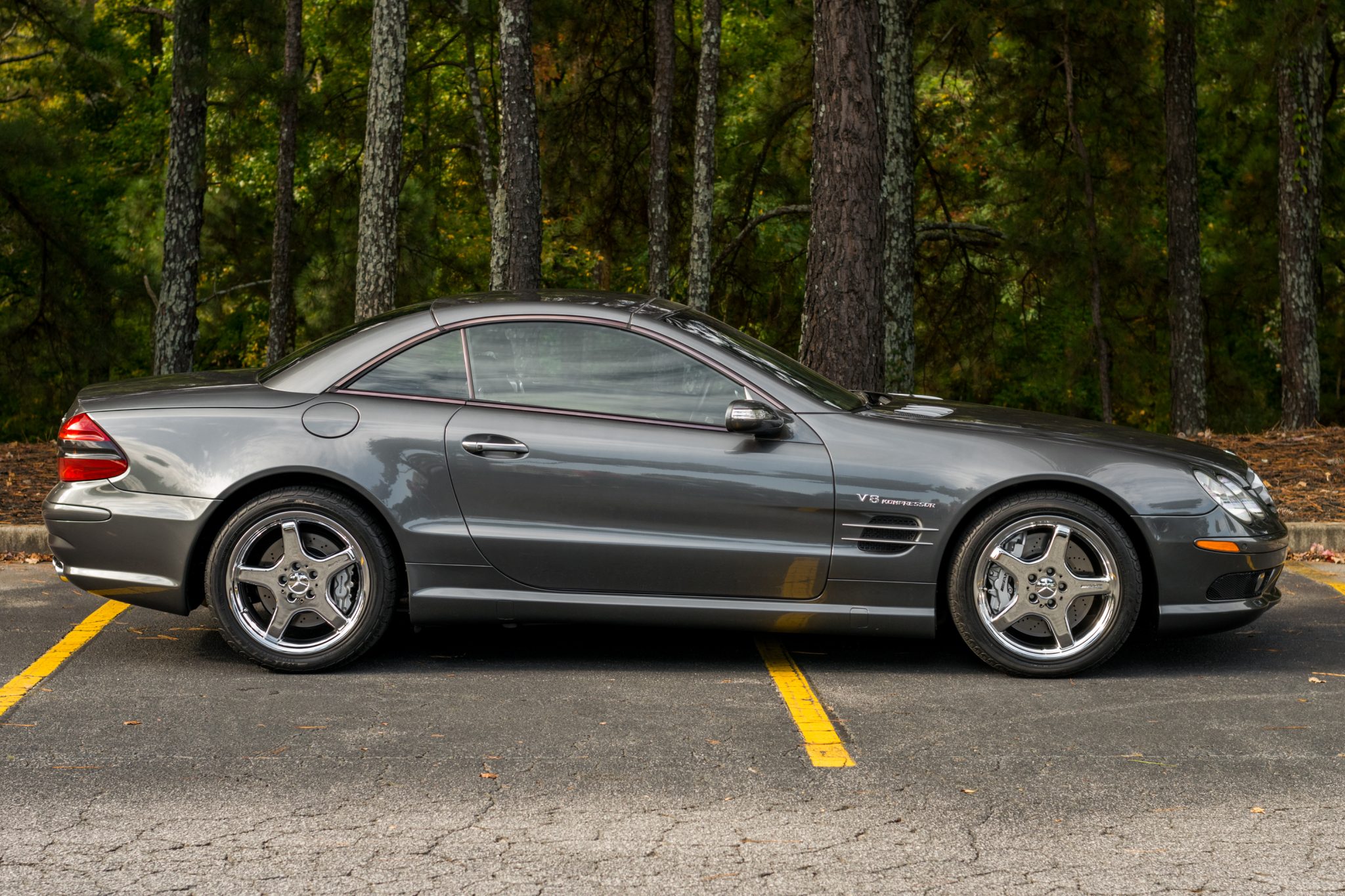 Chrome 18″ AMG wheels are wrapped in Michelin Pilot Sport A/S Plus tires. Standard equipment included Active Body Control suspension and four-wheel disc brakes with multi-piston calipers and cross-drilled rotors.