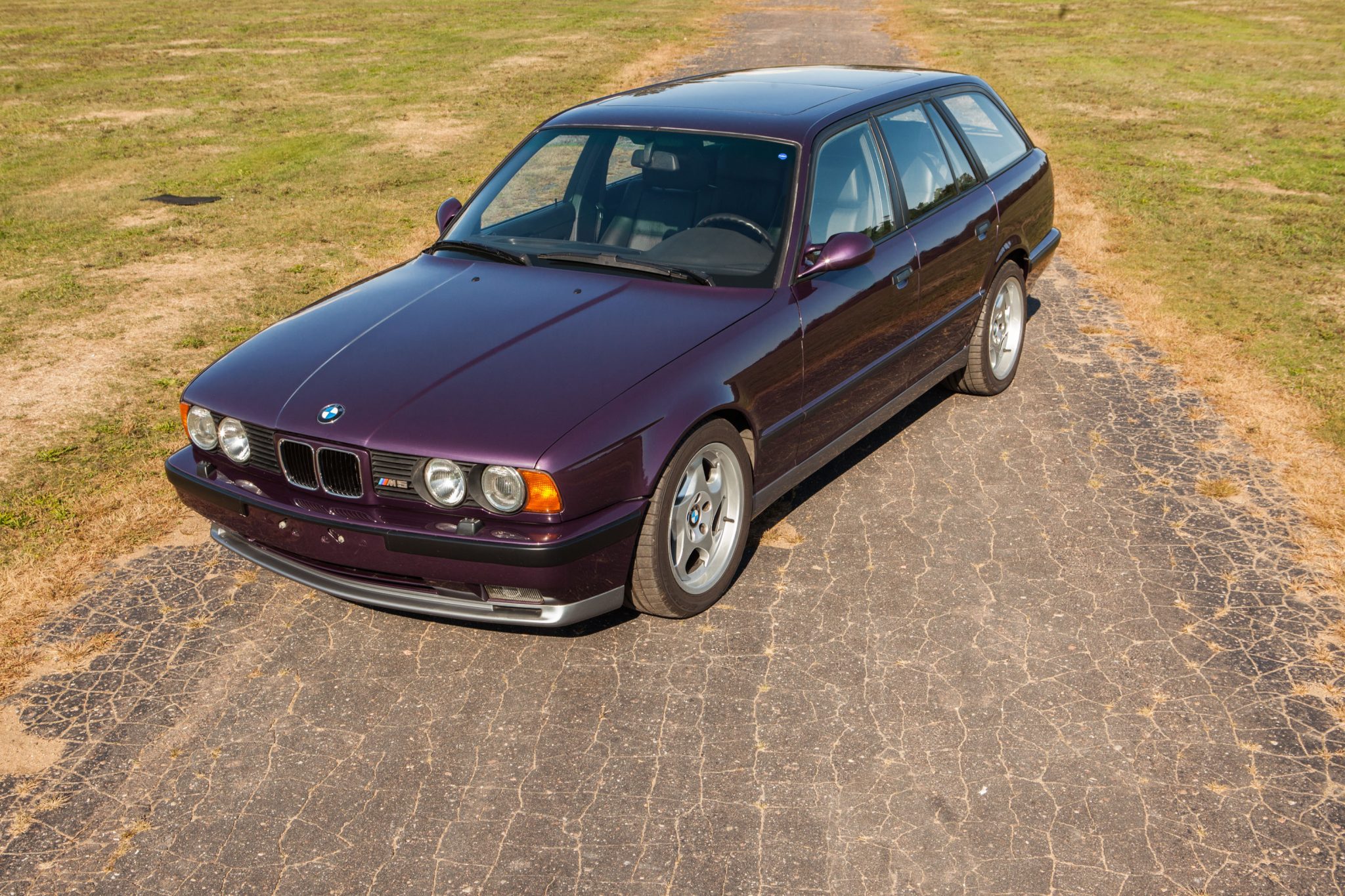17″ forged M System II wheels wear factory “throwing star” covers and are wrapped in Kumho Ecsta tires with 2015 date codes measuring 235/45 up front and 255/40 out back. Factory equipment on the E34 M5 Touring included four-wheel ventilated disc brakes, Electronic Damping Control, and self-leveling rear suspension.