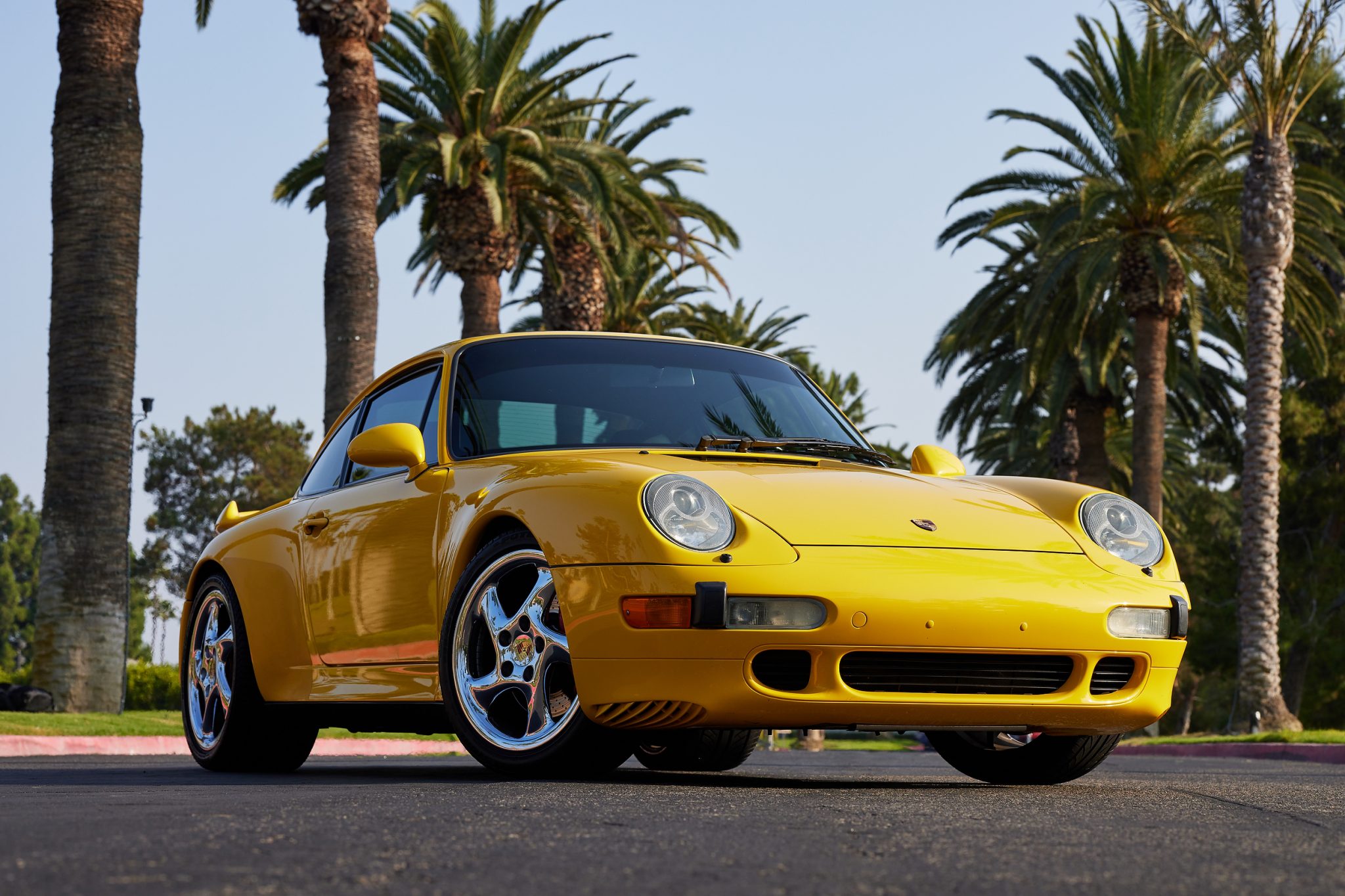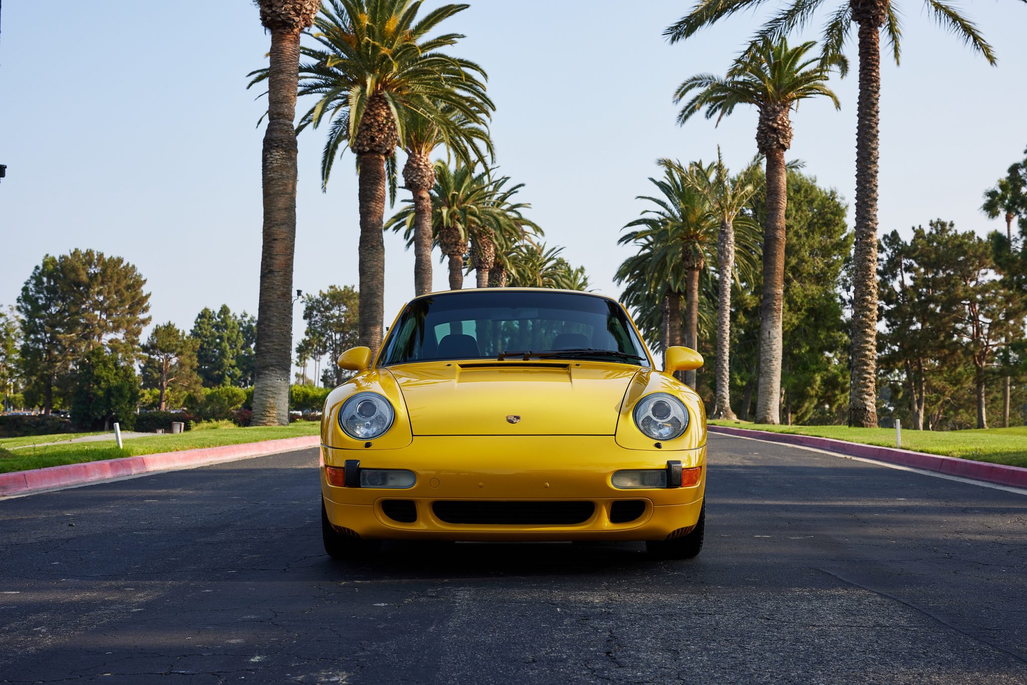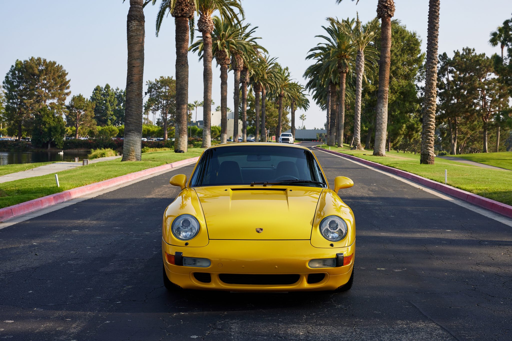 Factory 18″ cast alloy wheels wear a chrome finish, colored Porsche crests, and Bridgestone Potenza S-02A tires sized 225/40 up front and 285/30 out back. Braking is managed by red four-piston calipers over cross-drilled rotors all around, and the brake fluid was flushed in October 2020. The suspension has been modified with Bilstein Sport shocks and aftermarket sway bars.