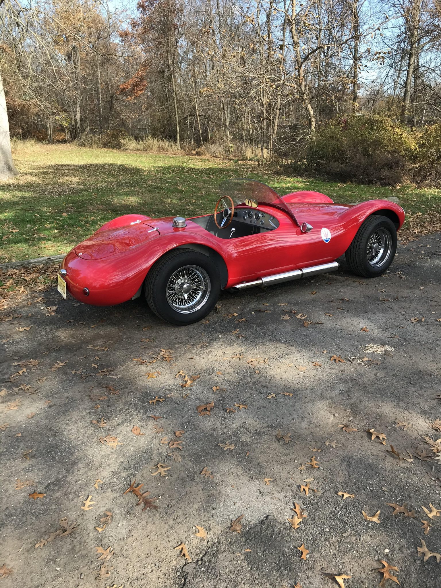 Chrome-finished 16″ stainless steel wire wheels feature knock-off hubs and are mounted with 235/60 Michelin Defender tires that were installed in 2019. The car features an independent front suspension with custom-made unequal length A-arms, coilover shocks, and Willwood aluminum wheel hubs, while a four-bar setup with a Panhard rod and coilover shocks is fitted out back. Braking is handled by front Wilwood discs up front and Brembo units out back.