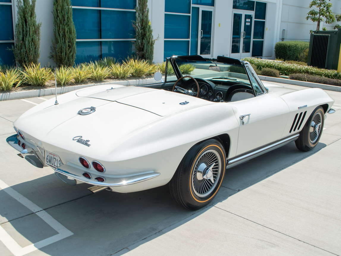 Turbine-style 15″ wheels feature three-eared knock-off spinners and wear period-style BFGoodrich Silvertown gold-line tires.