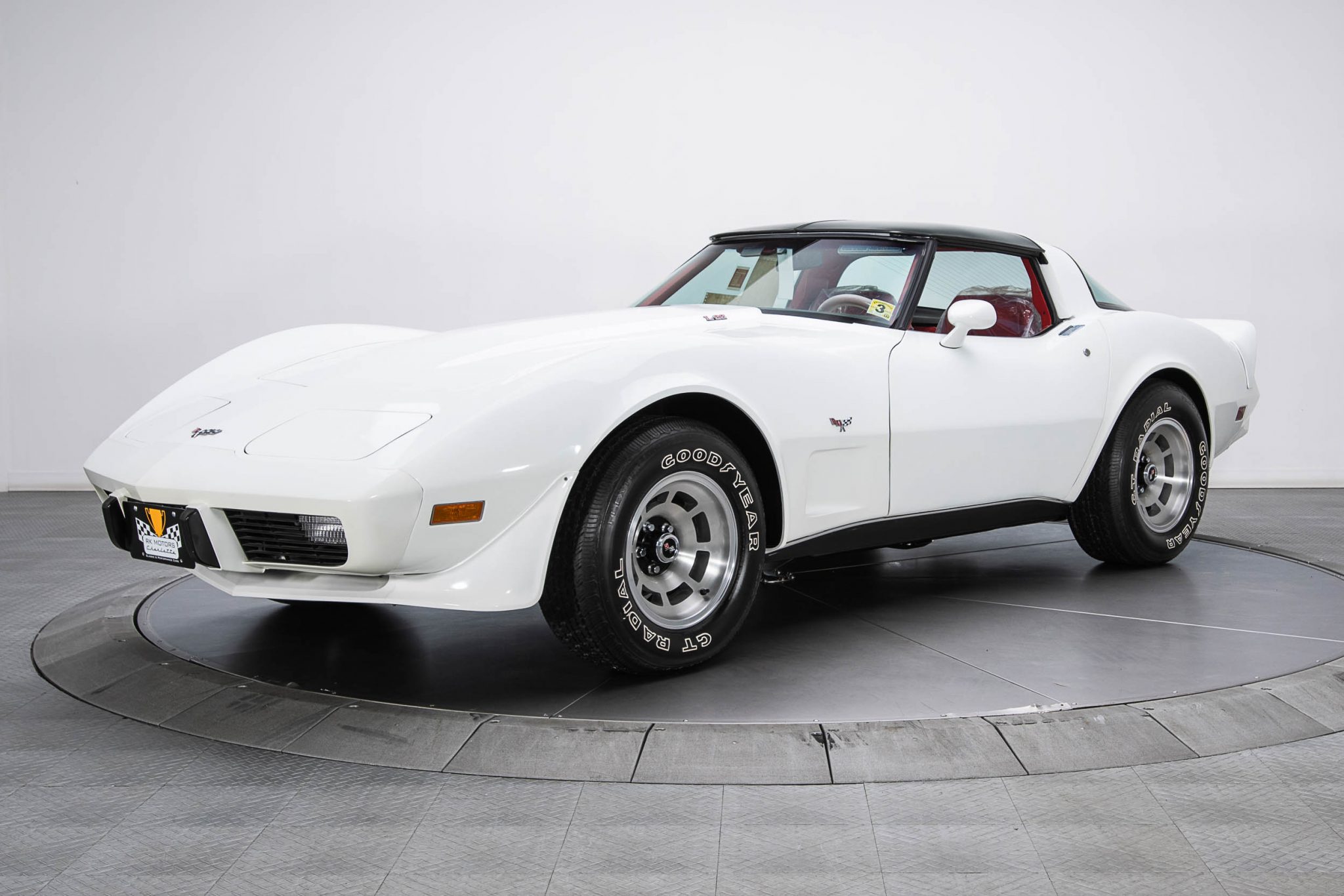 Factory 15″ aluminum wheels wear colored Corvette center caps and 255/60 Goodyear GT Radial white letter tires. Each corner is equipped with disc brakes, and a stiffer Gymkhana suspension was optioned.