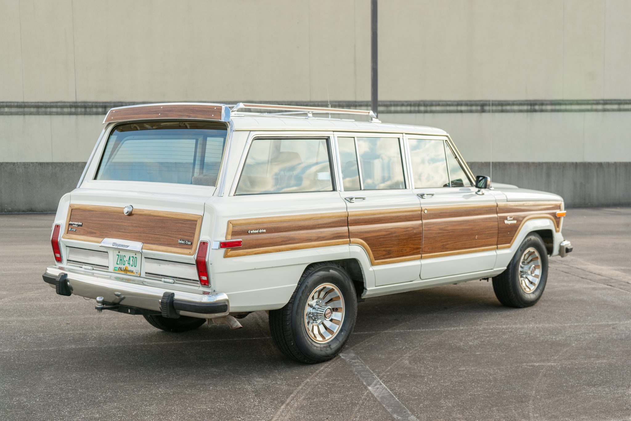 Factory 15” gold-accented wheels feature Jeep hubcaps and wear 235/75 Corsa Highway Terrain Plus tires showing 2020 date codes. A full-size spare is mounted below the truck and replacement shocks were reportedly installed in 2020.