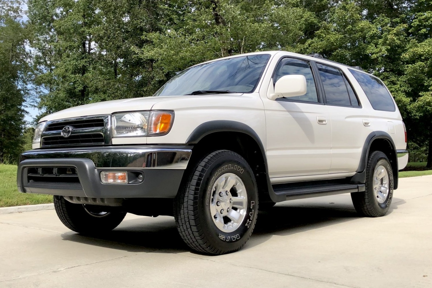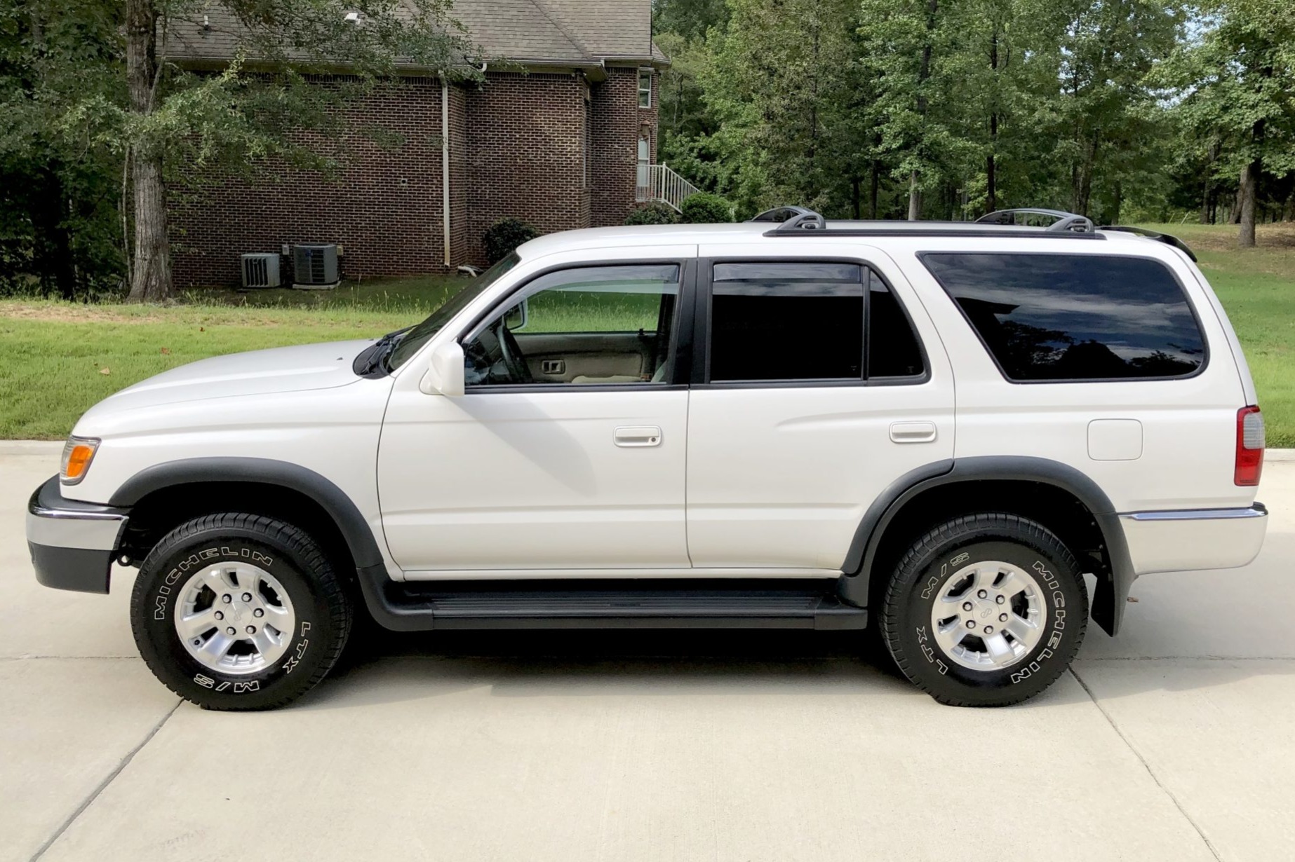 Optional 15″ Enkei wheels are mounted with 30″x9.5″ Michelin LTX M/S tires. A walk-around video is provided by the seller, who notes that the stock roof crossbars have been removed and will be included in the sale.
