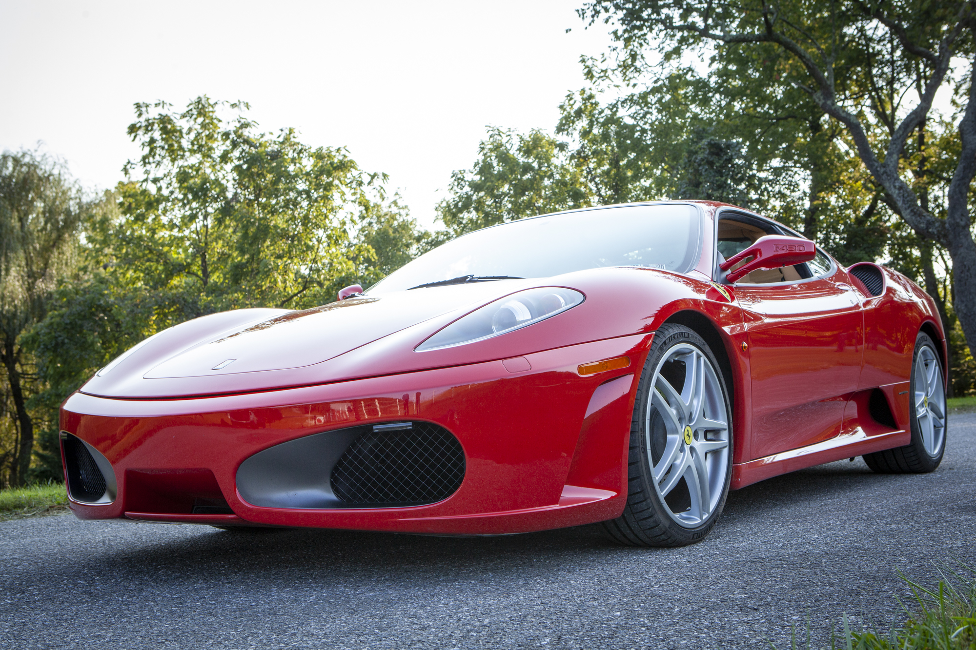 This example is finished in Rosso Corsa, and a previous owner added clear protective film to the front bumper, fenders, hood, and side mirrors. The seller notes that the film exhibits areas of wear and discoloration, while two paint chips are apparent on the roof and rear deck. A crack in the rear diffuser was repaired in February 2020.