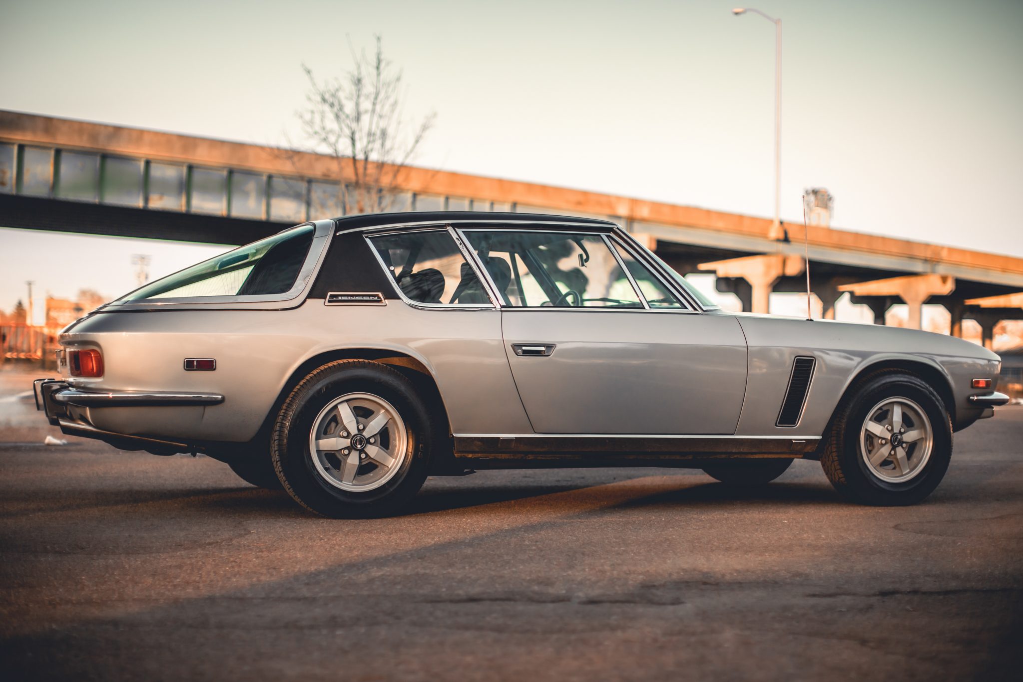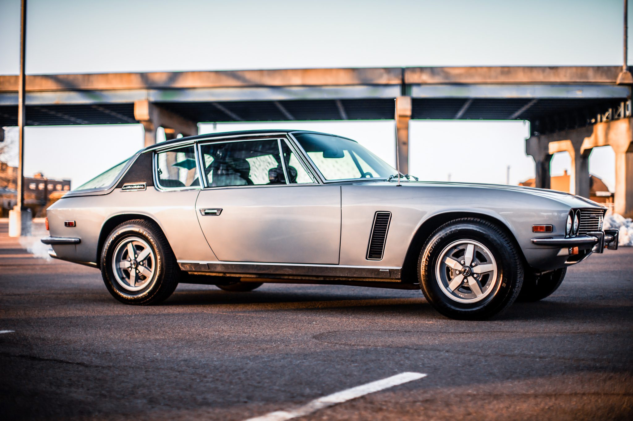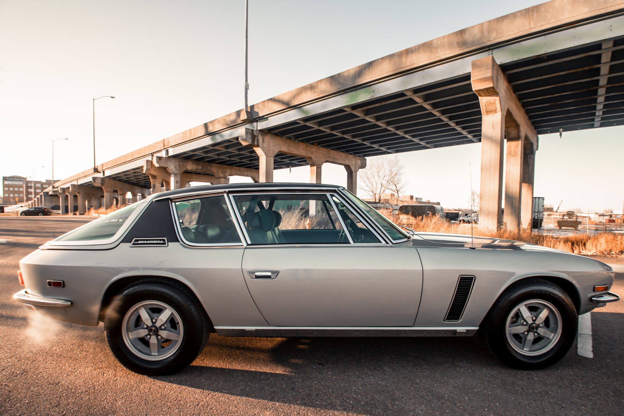 Factory 15″ GKN wheels feature Jensen center caps and are mounted with 225/70 Performance Radial G/T tires. Power-assisted brakes and steering were equipped from the factory.