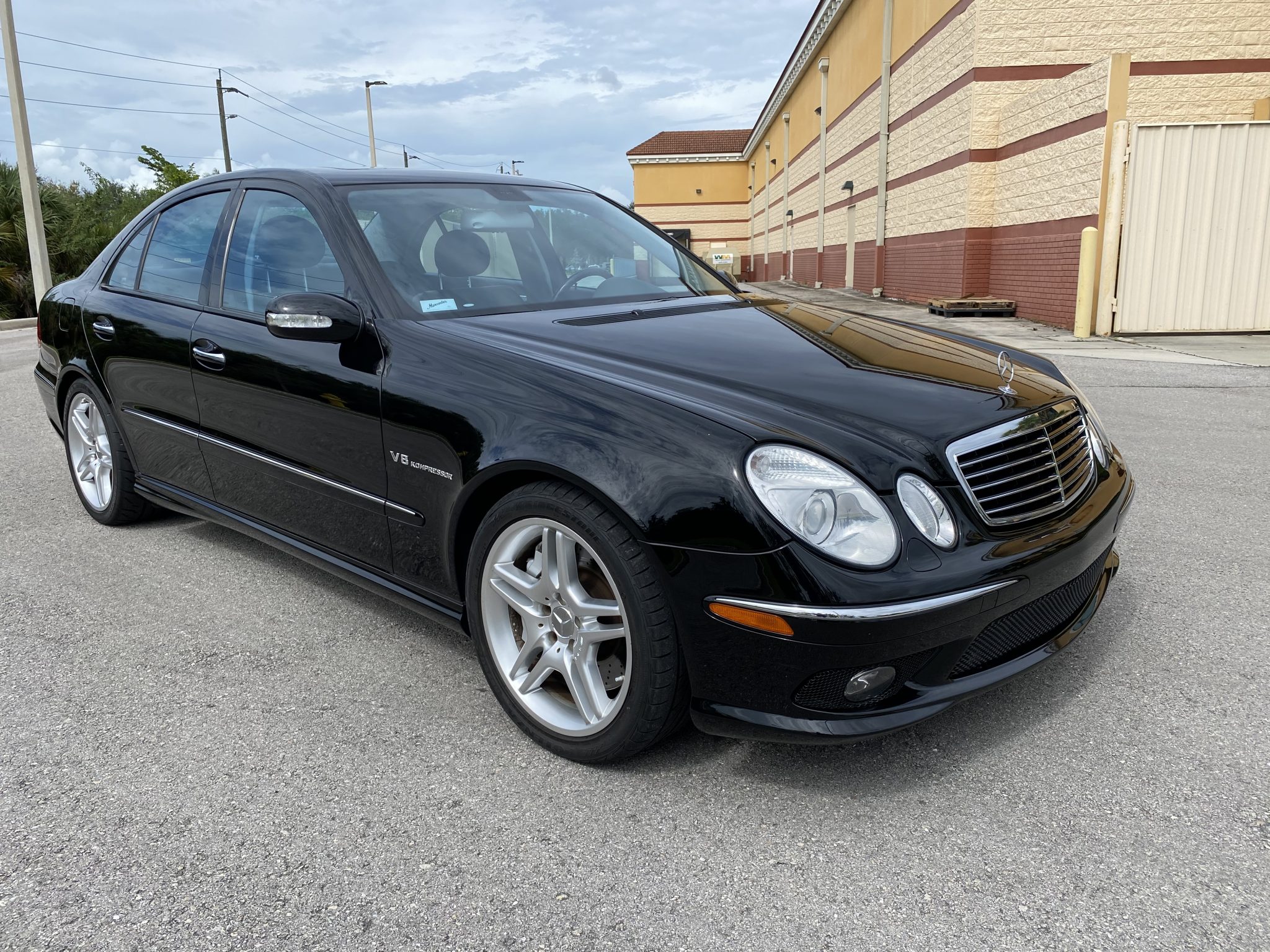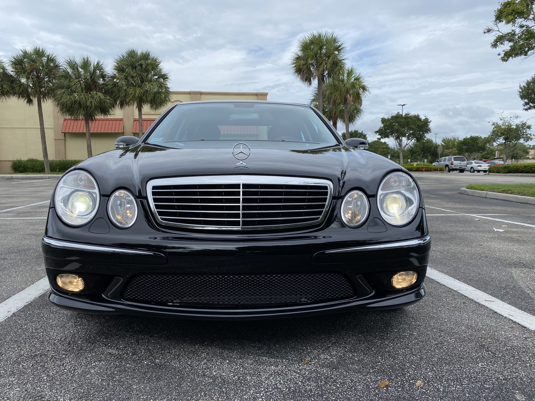 Staggered-width 18″ AMG alloy wheels are wrapped in 245/40 Bridgestone Potenza RE760 Sport tires up front and 265/35 Bridgestone Potenza RE71R tires out back. The car is equipped with drilled brake rotors as well as an air suspension.